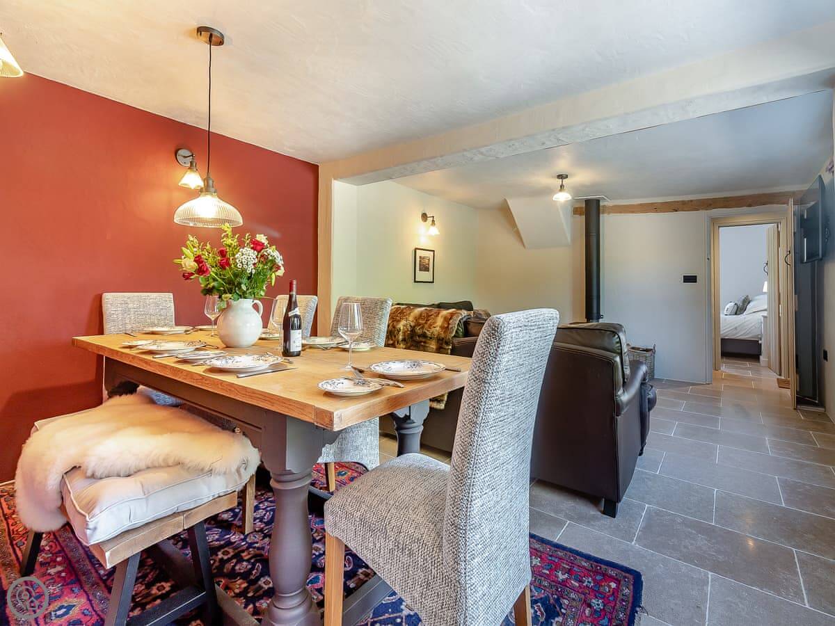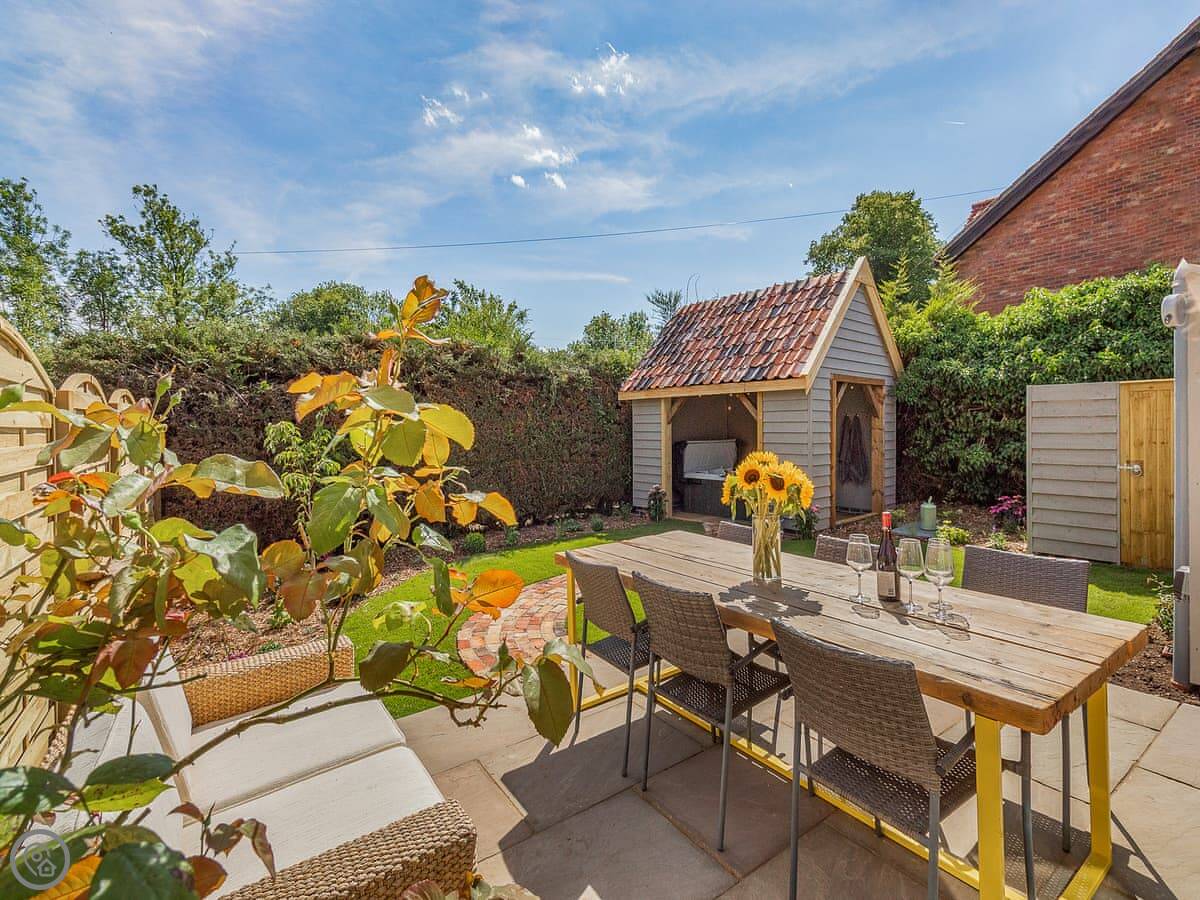 Outside, there's an enclosed lawn garden with a hot tub and a barbecue. You can also use the owner's paddock next door to exercise dogs. They allow up to four pets.