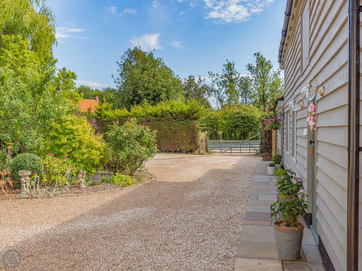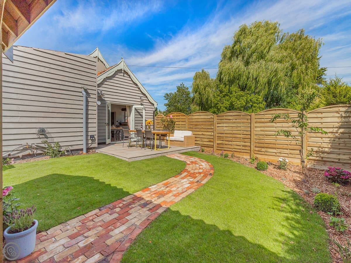 Queens Barn is in Wortham, Suffolk. It's on the main road between Bury St Edmunds and Diss, so you'll hear some traffic. But the garden is enclosed, so it's fine.