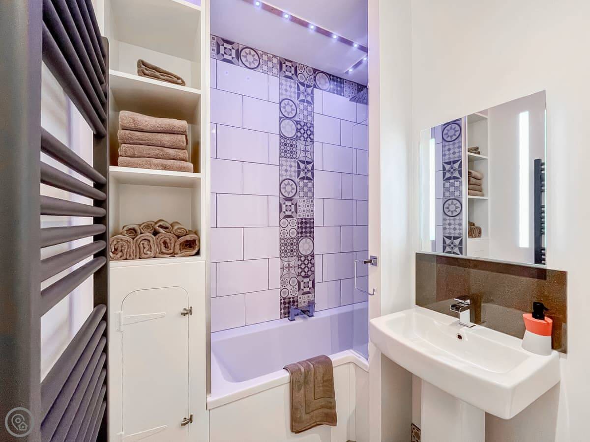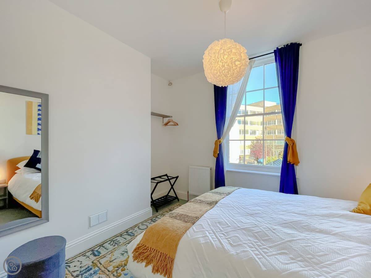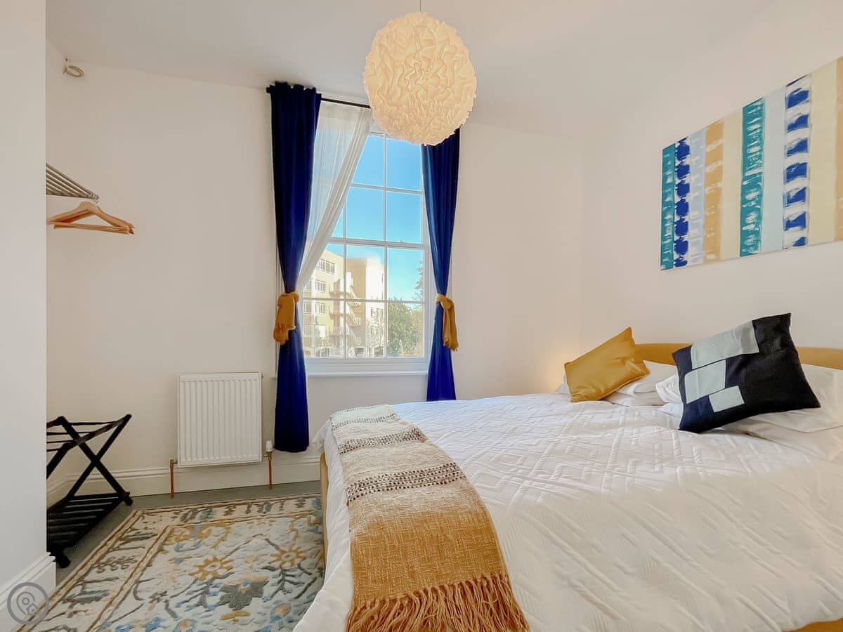 It's a 4 Star place, sleeps four but with one proper bedroom. That has a king size bed. The other two people sleep on a sofa bed in the living area. There's one bathroom with a bath you can shower over.