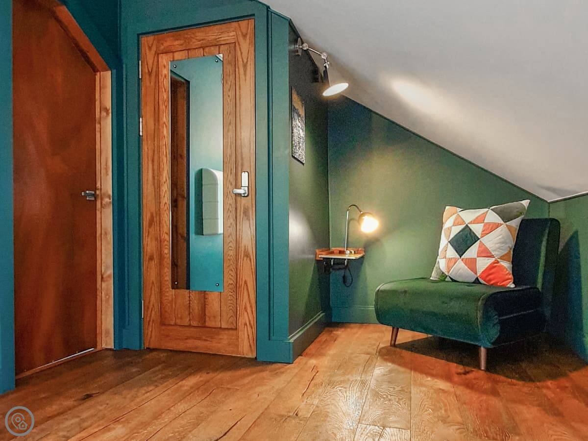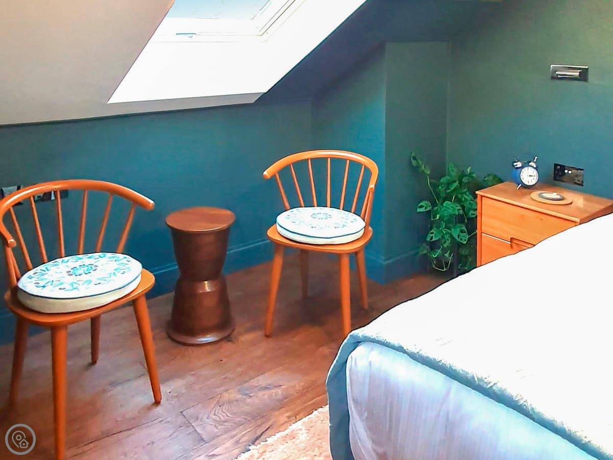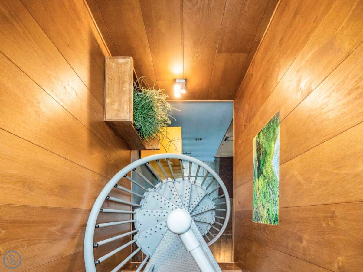 It sleeps four. Two bedrooms, one bathroom. It's a 5 Star place, which means it's very well done up and has things like underfloor heating. There's a spiral staircase to the upstairs rooms, so watch your head if you're tall.
