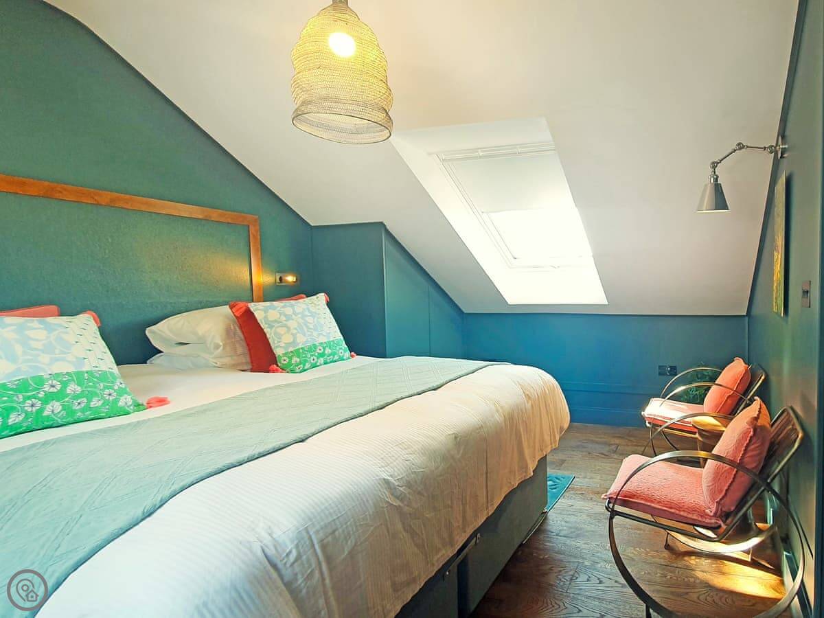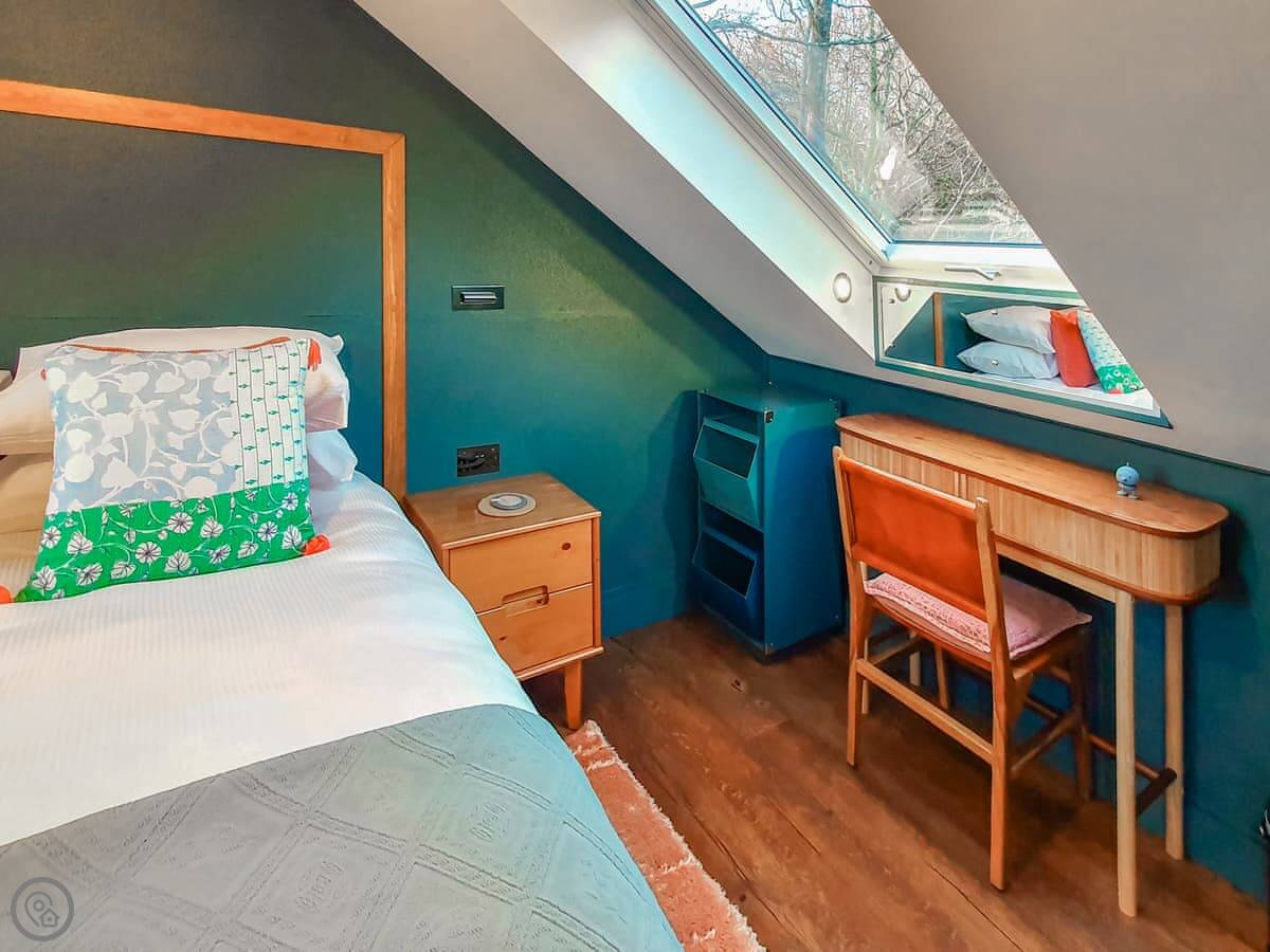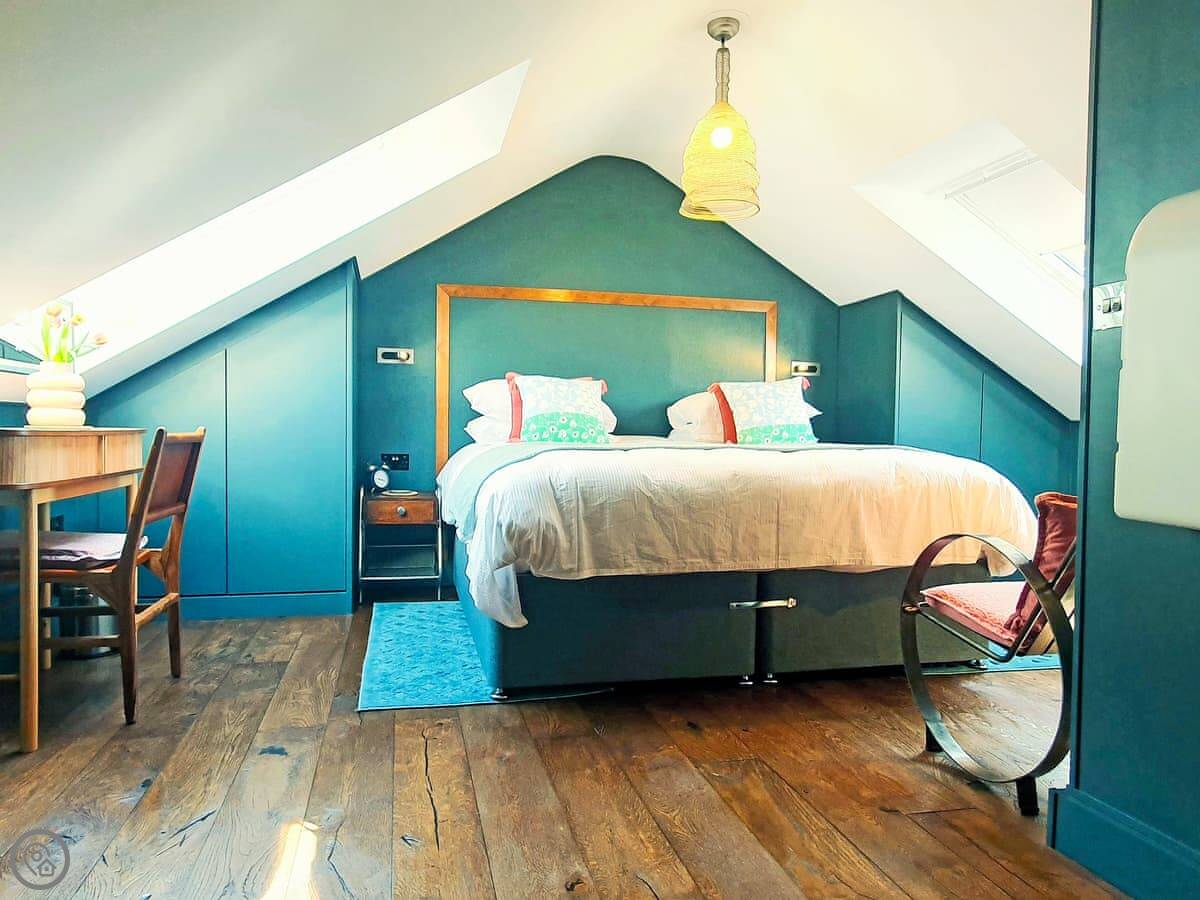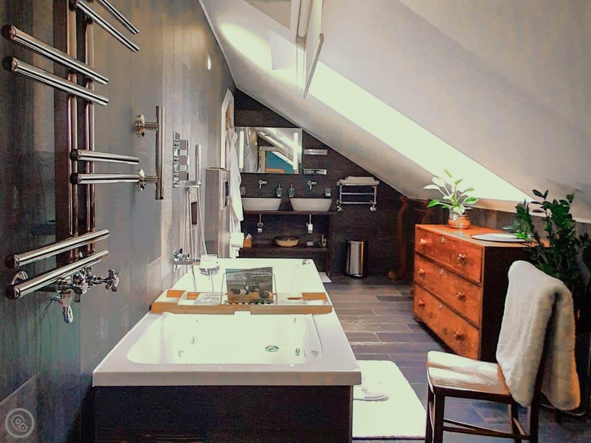 It sleeps four. Two bedrooms, one bathroom. It's a 5 Star place, which means it's very well done up and has things like underfloor heating. There's a spiral staircase to the upstairs rooms, so watch your head if you're tall.