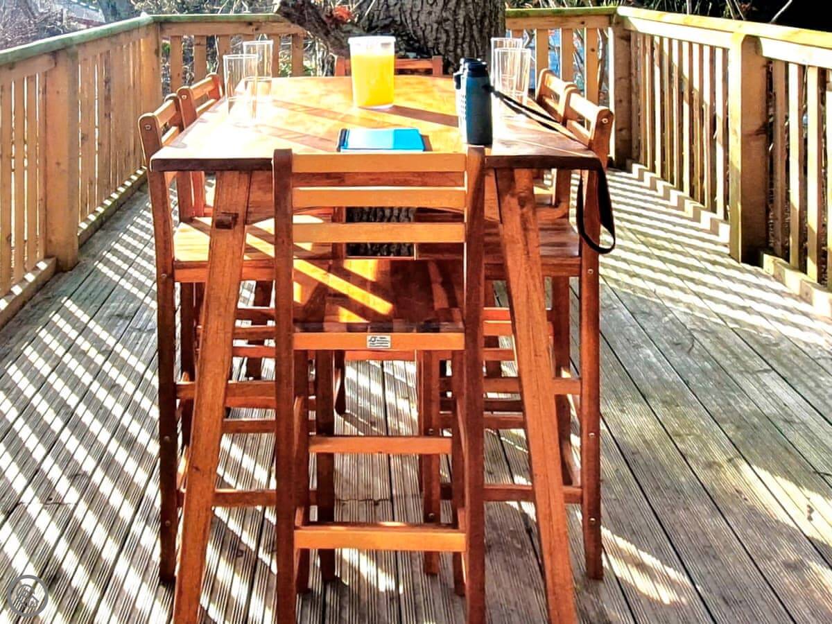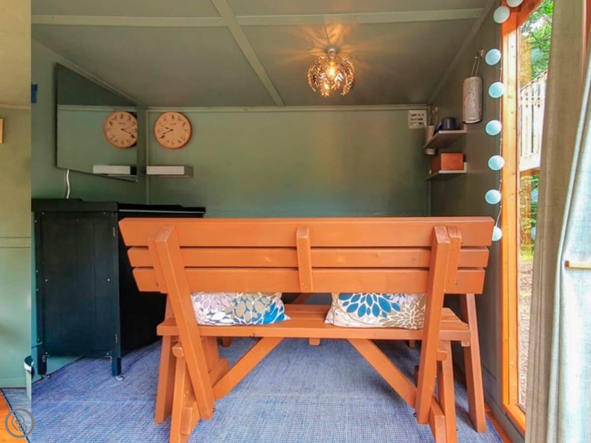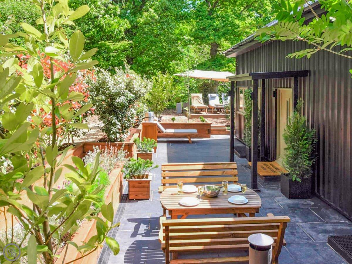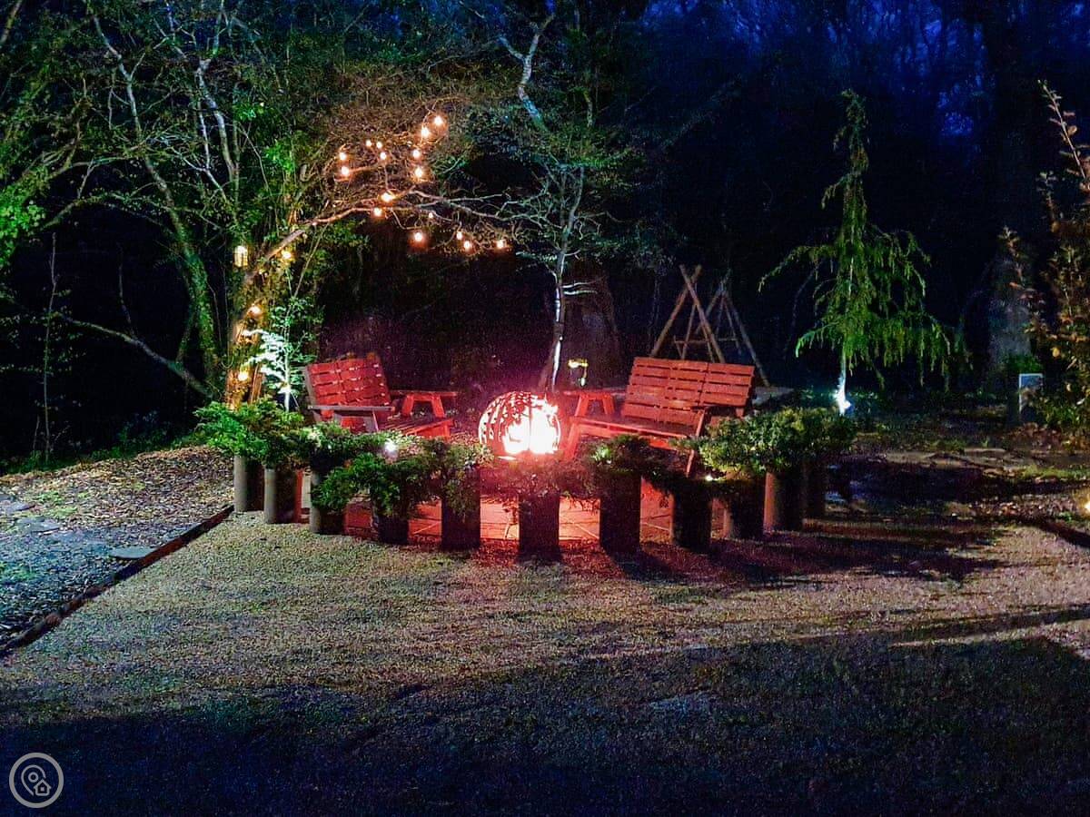 The garden is private and has a few different spots to sit, including a fire pit. You can see a lot of sky, which is good because it's a dark sky area here. It gets properly dark at night.