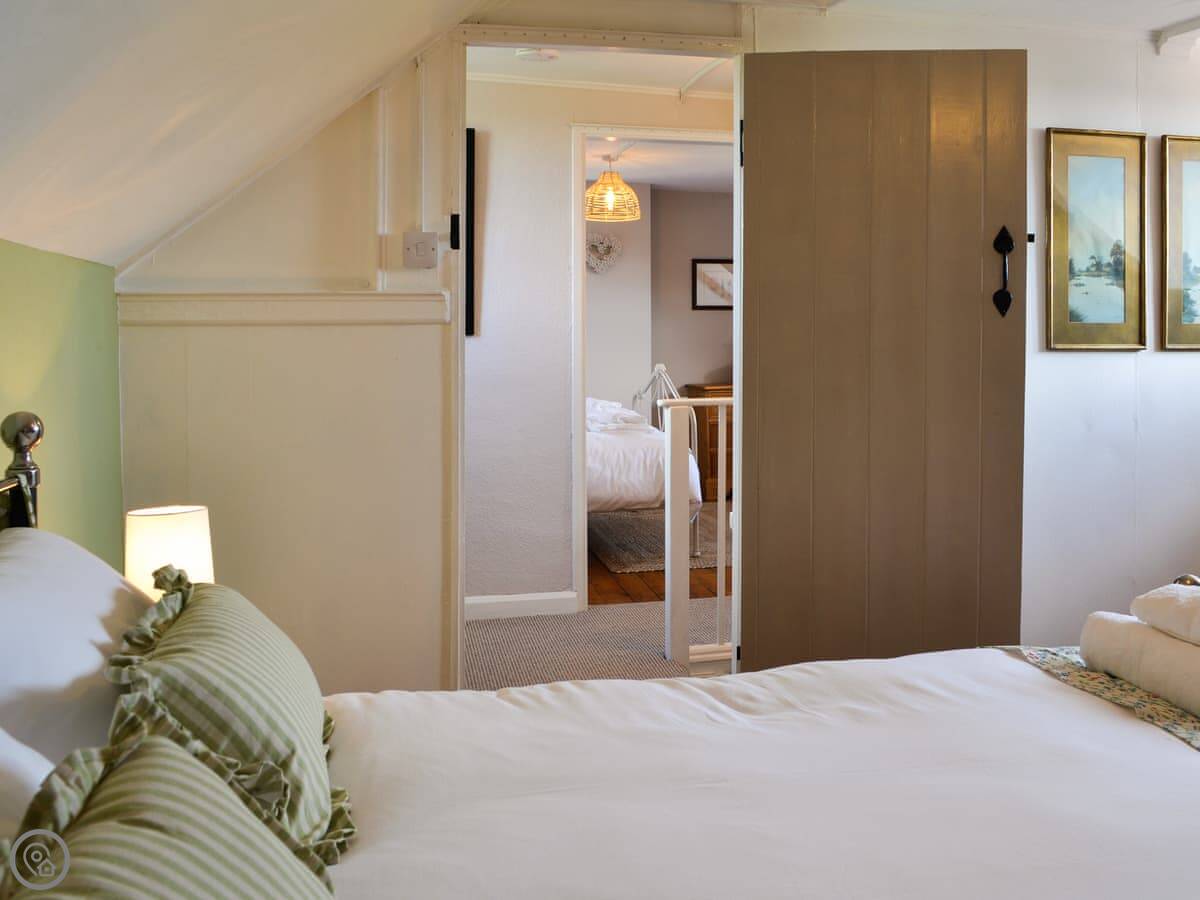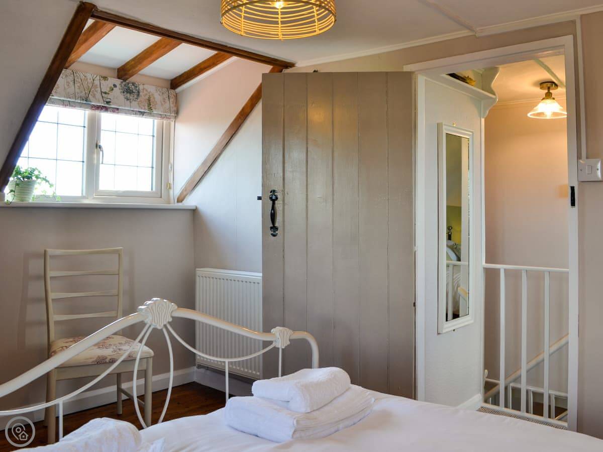 The cottage sleeps four. Two bedrooms, one bathroom upstairs. It's a 5 Star property, which means it's been done to a high standard inside. The stairs are cottage stairs, so they're steep. You might want to hold the banister.