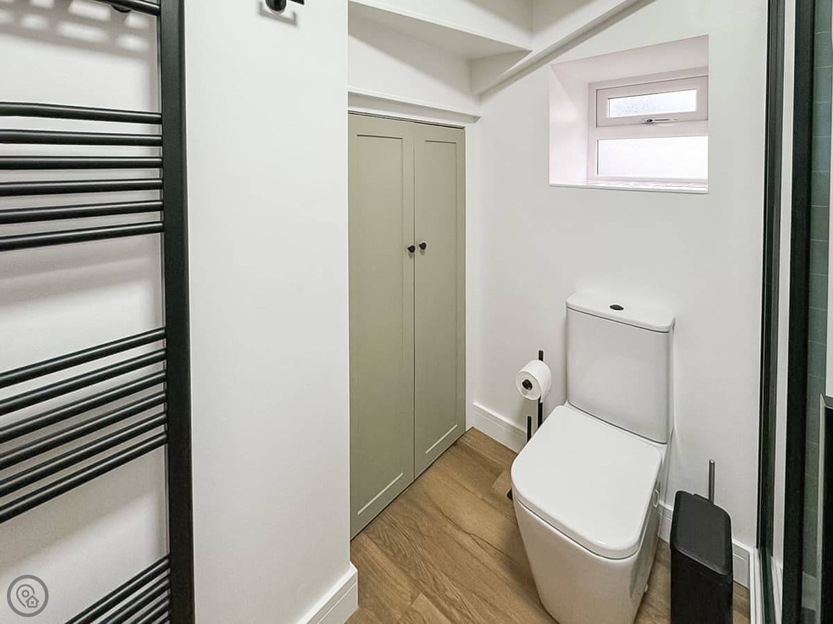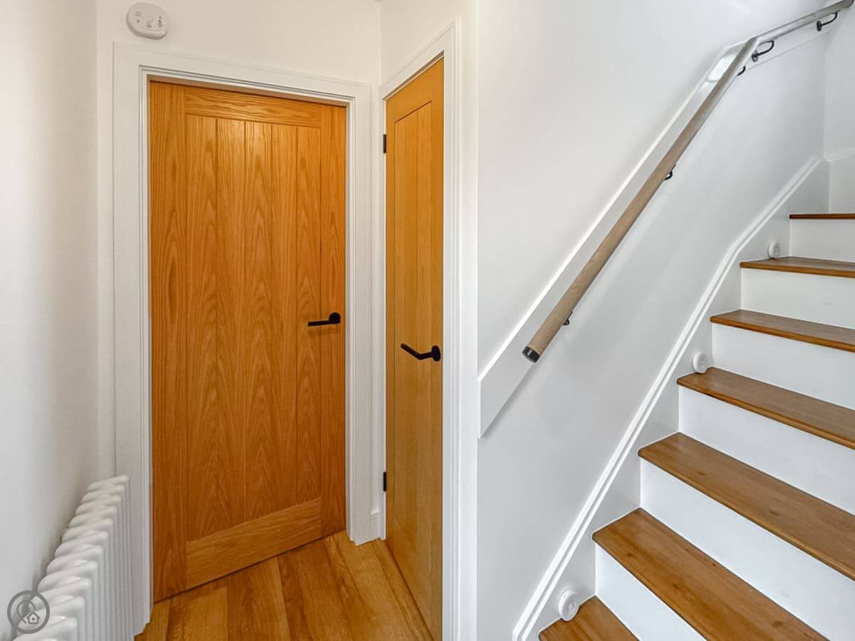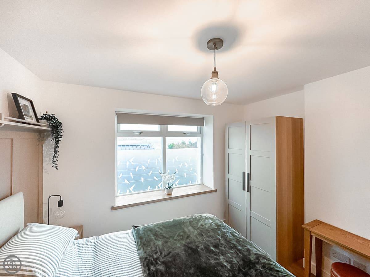 The cottage sleeps four. Two bedrooms, one bathroom. Both bedrooms are doubles and they're downstairs. The main one has good views over where the lochs and the River Clyde meet. It's a quiet spot. The bathroom is a shower room.