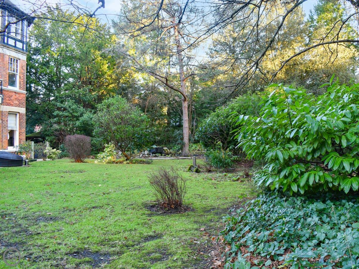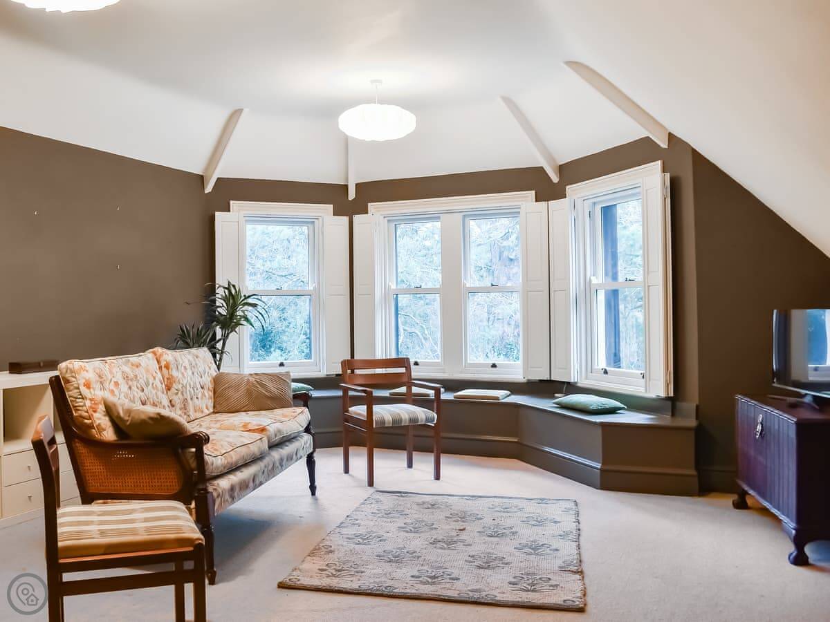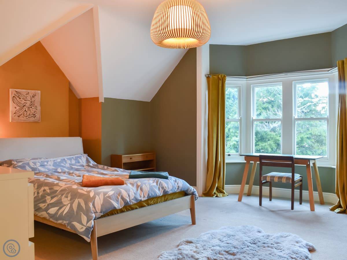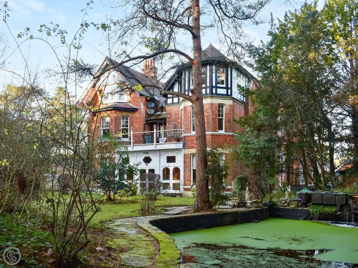 Rockmount Apartment is in Bournemouth, on the second floor of a big old house. It sleeps five. There are three double bedrooms and two bathrooms, one is an en suite off the main bedroom. The living room is large and looks out over the shared garden area.
