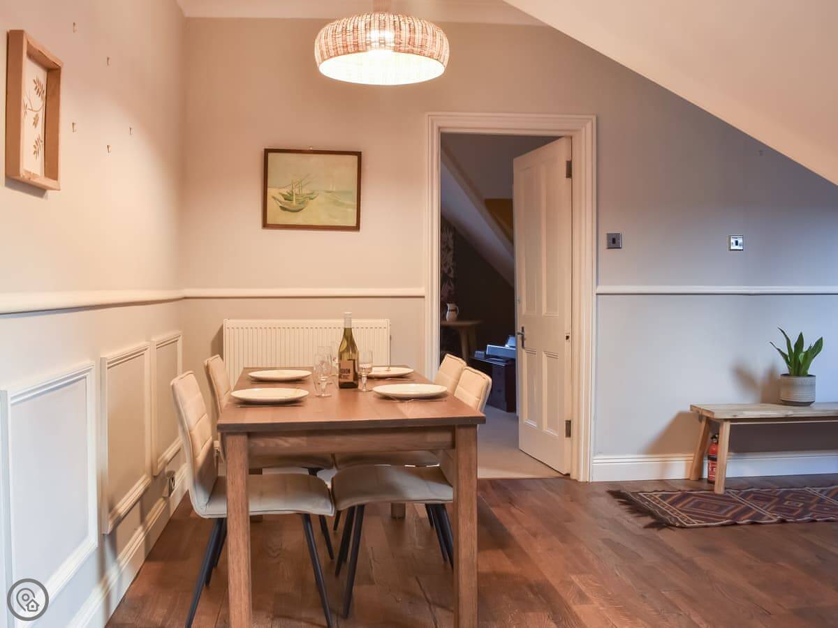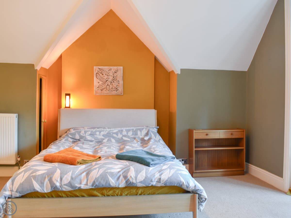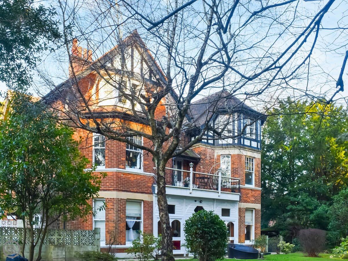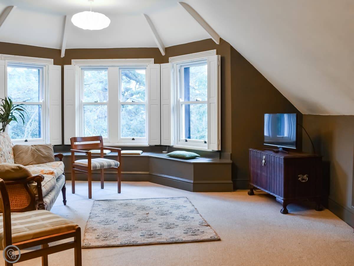 Rockmount Apartment is in Bournemouth, on the second floor of a big old house. It sleeps five. There are three double bedrooms and two bathrooms, one is an en suite off the main bedroom. The living room is large and looks out over the shared garden area.