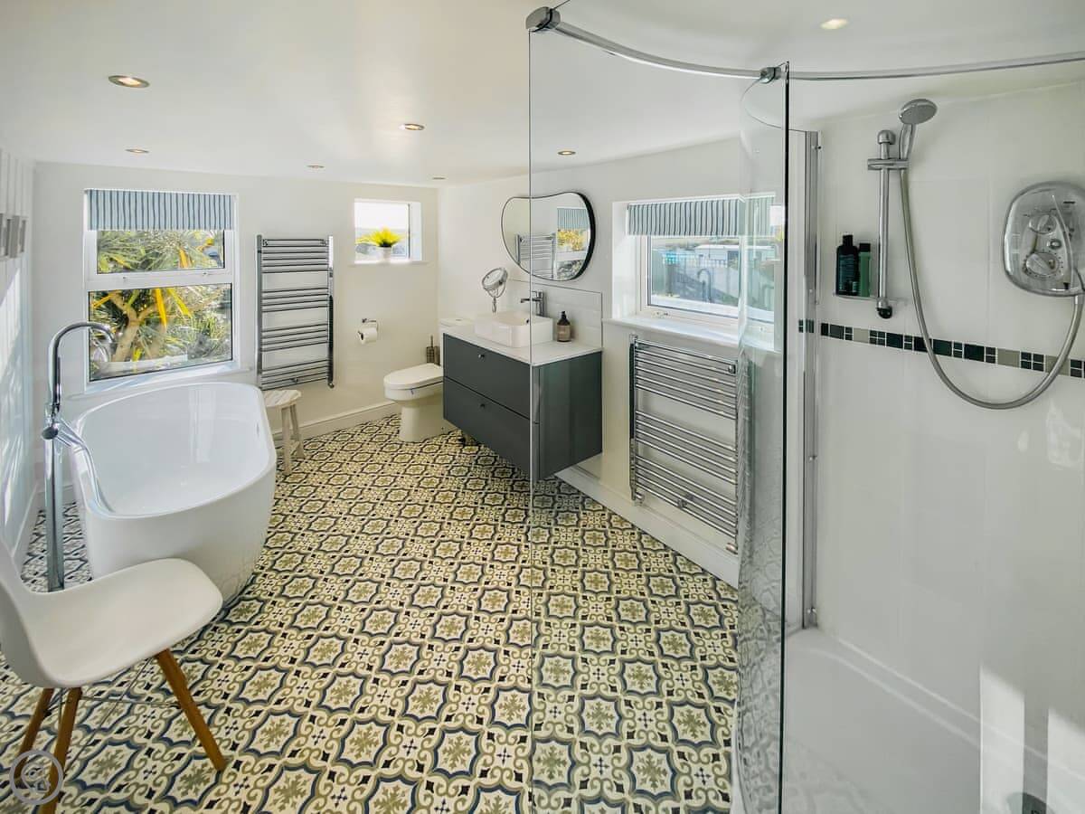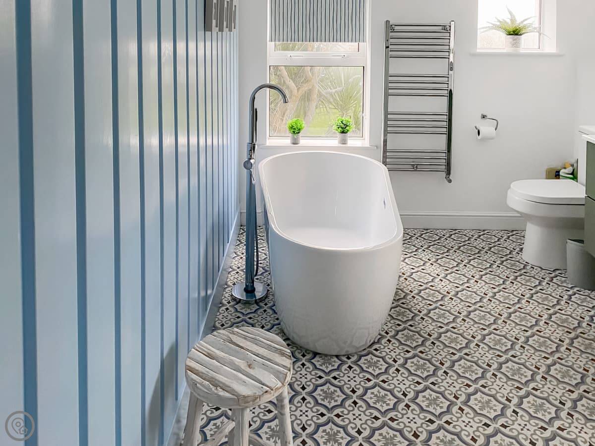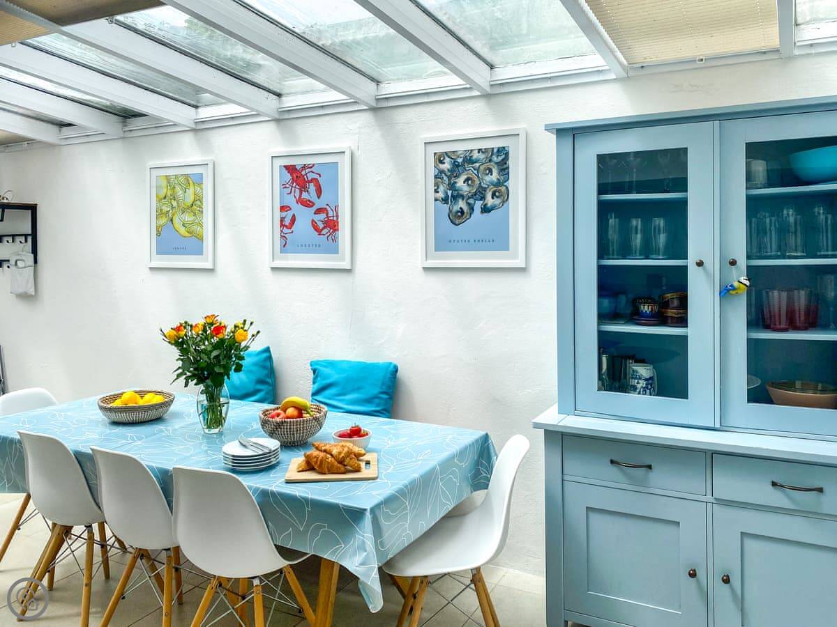 In terms of what's here: all the bedding and towels are included. There's WiFi, a washing machine, dishwasher, TV. We can provide a cot, highchair, and stairgate. We accept up to two dogs.