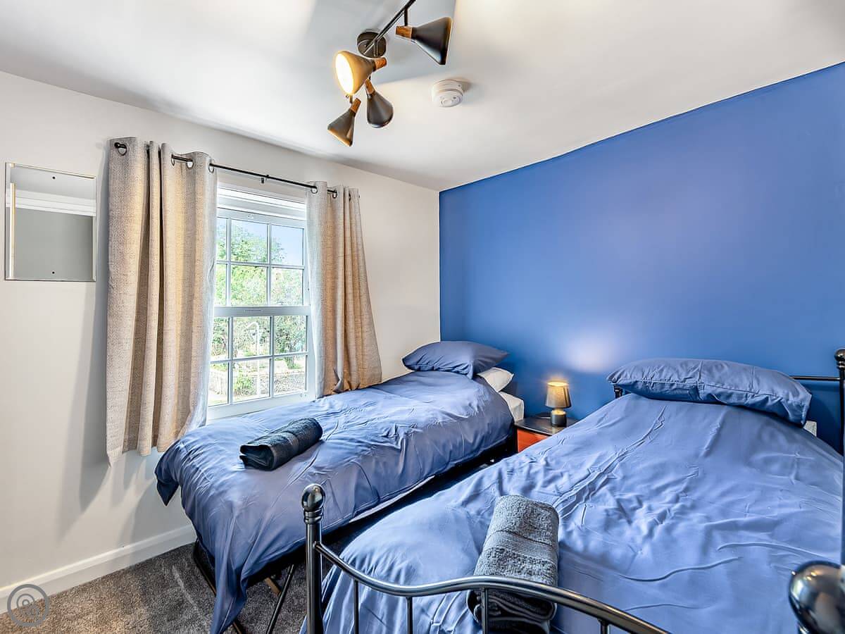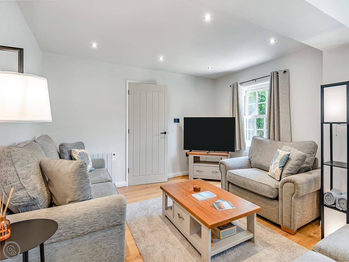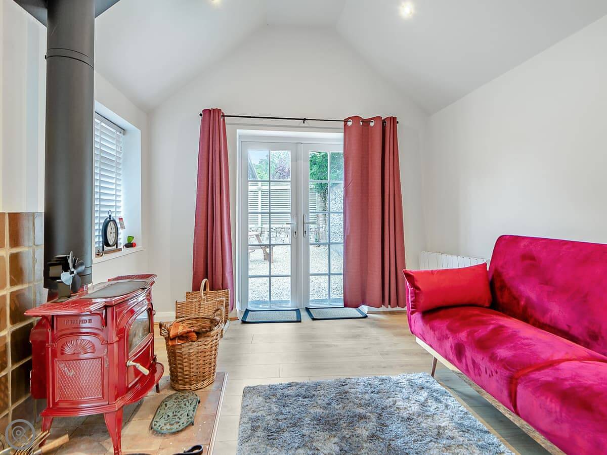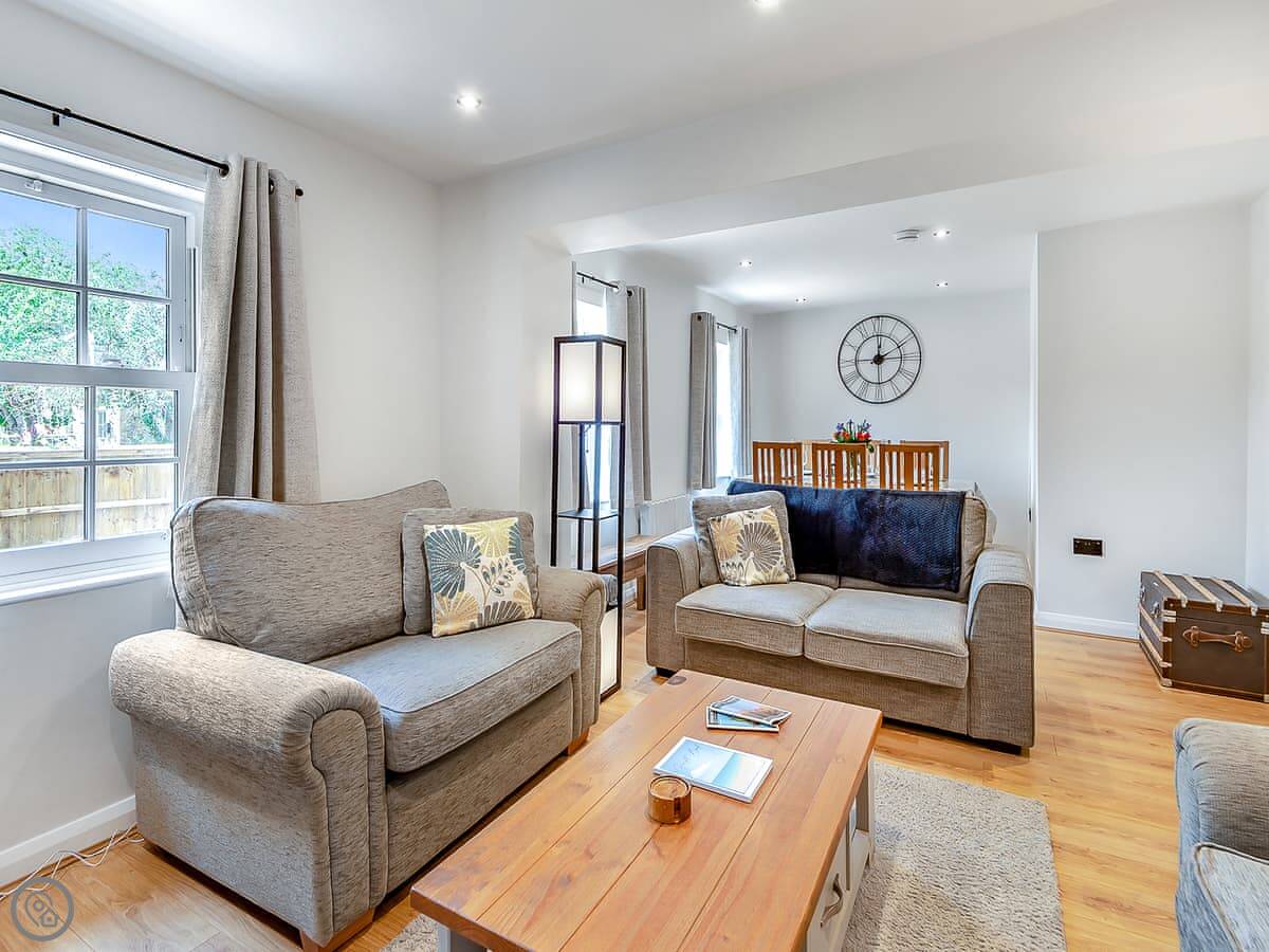 Sleeps six, three bedrooms, two bathrooms. It's got a five star rating so it's a good standard. The kitchen's new and it has a door straight out to the garden. There's two sitting rooms, one has a wood burner. The main bathroom upstairs has both a bath and a separate shower.