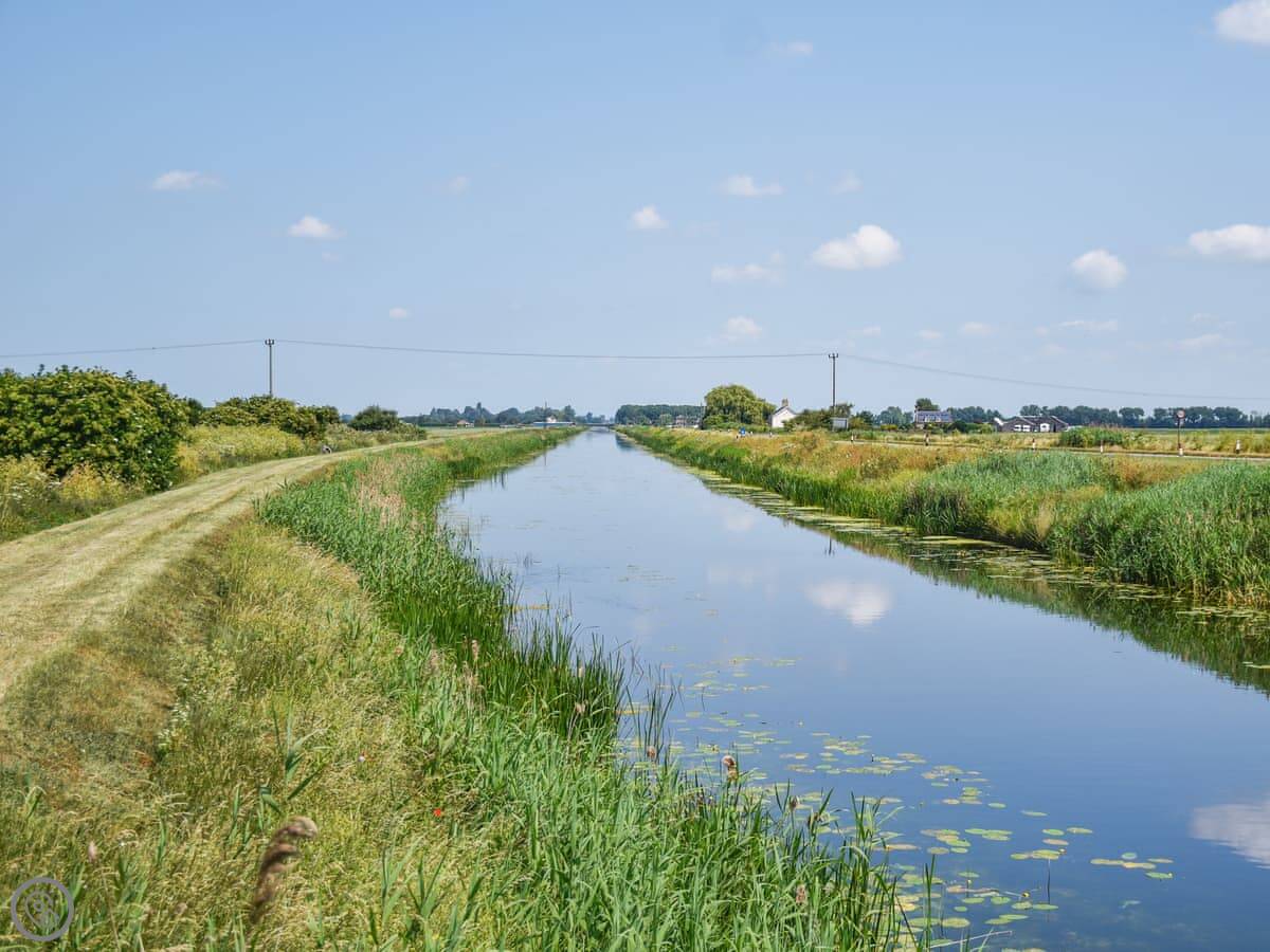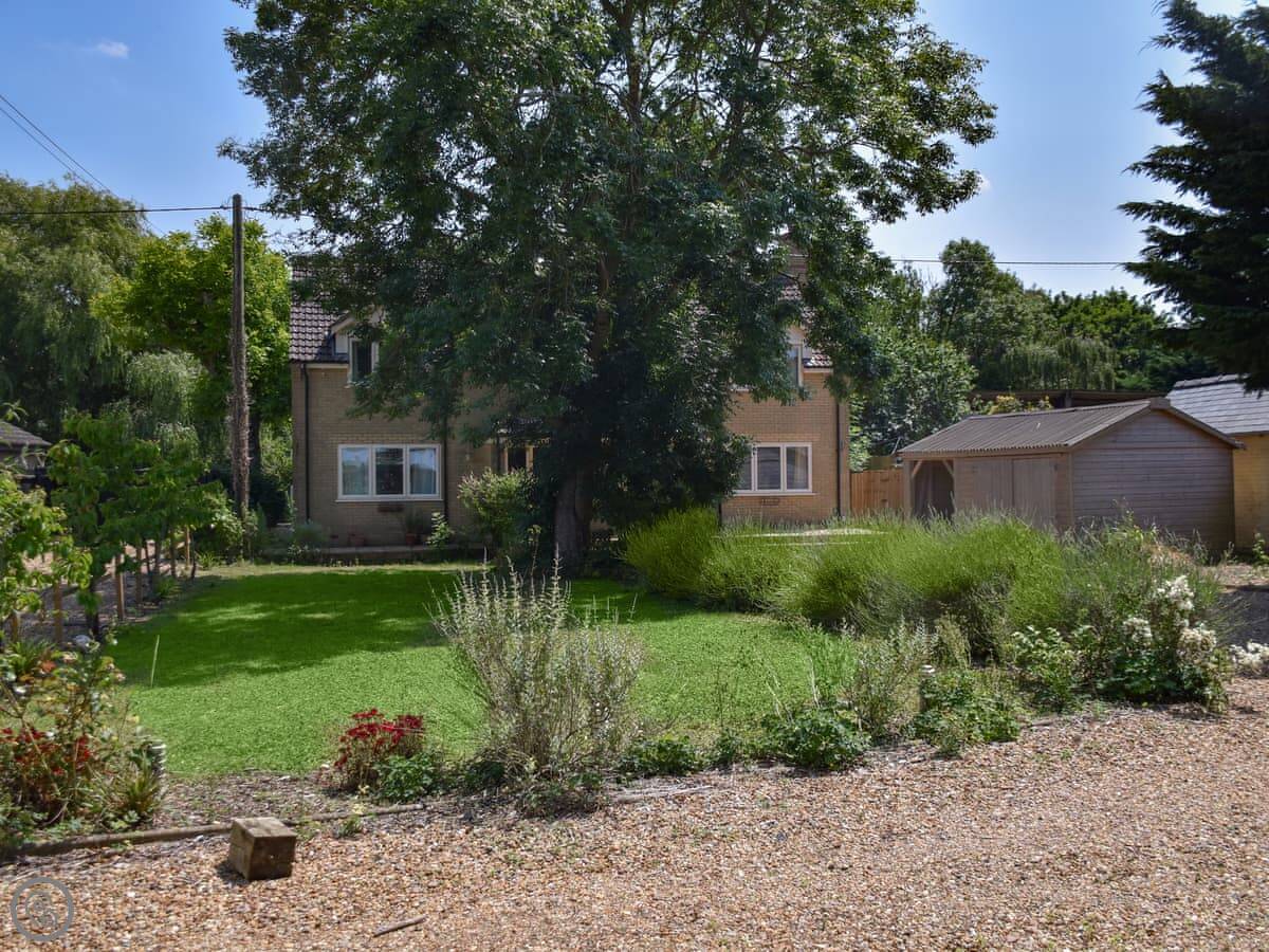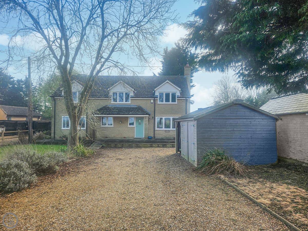 Riverside is in Wimblington, out near the fens. It's a detached house set back from the road, opposite the Sixteen Foot River Bank. It's a proper big place, sleeps up to twelve. Six bedrooms, three bathrooms.