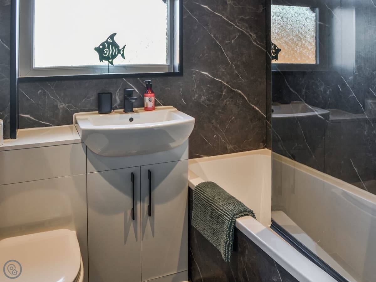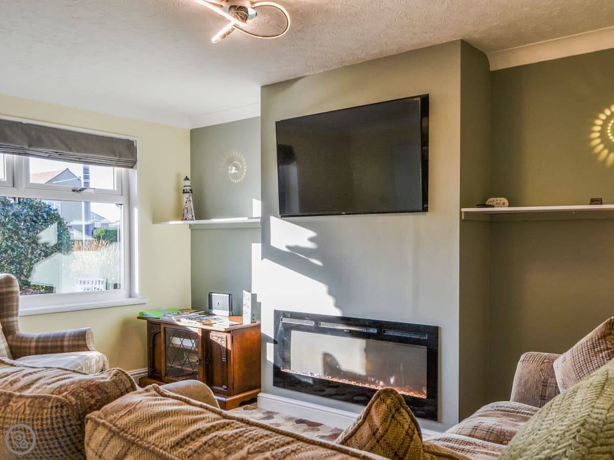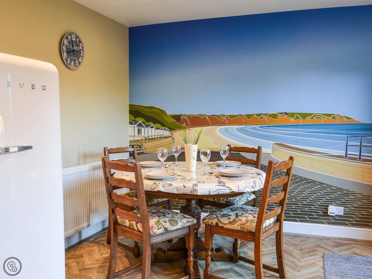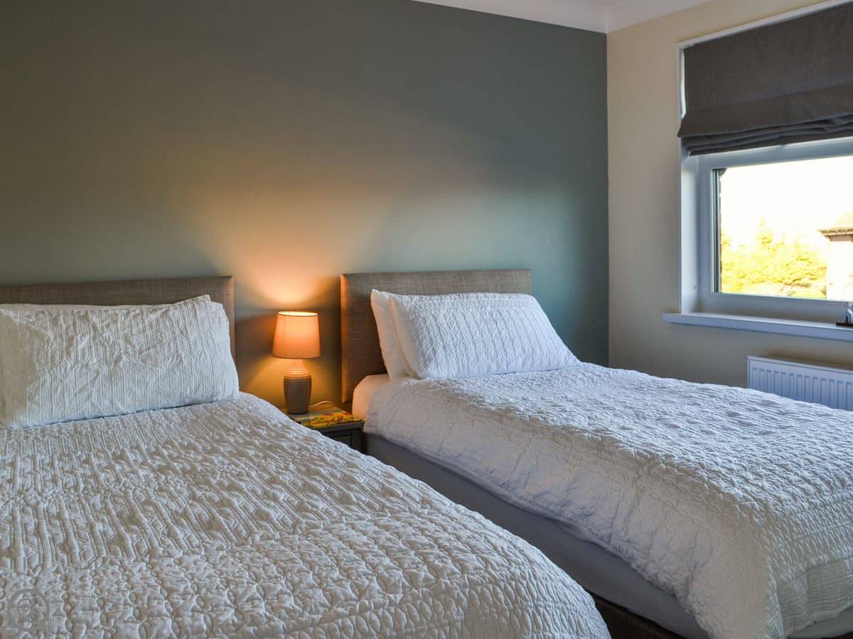 Inside, the kitchen has what you'd need. Induction hob, air fryer, dishwasher. The living room has a large TV. Two of the bedrooms have TVs as well. The main bedroom has a four-poster bed. The second bedroom has a super king that can be split into two singles if you ask beforehand.