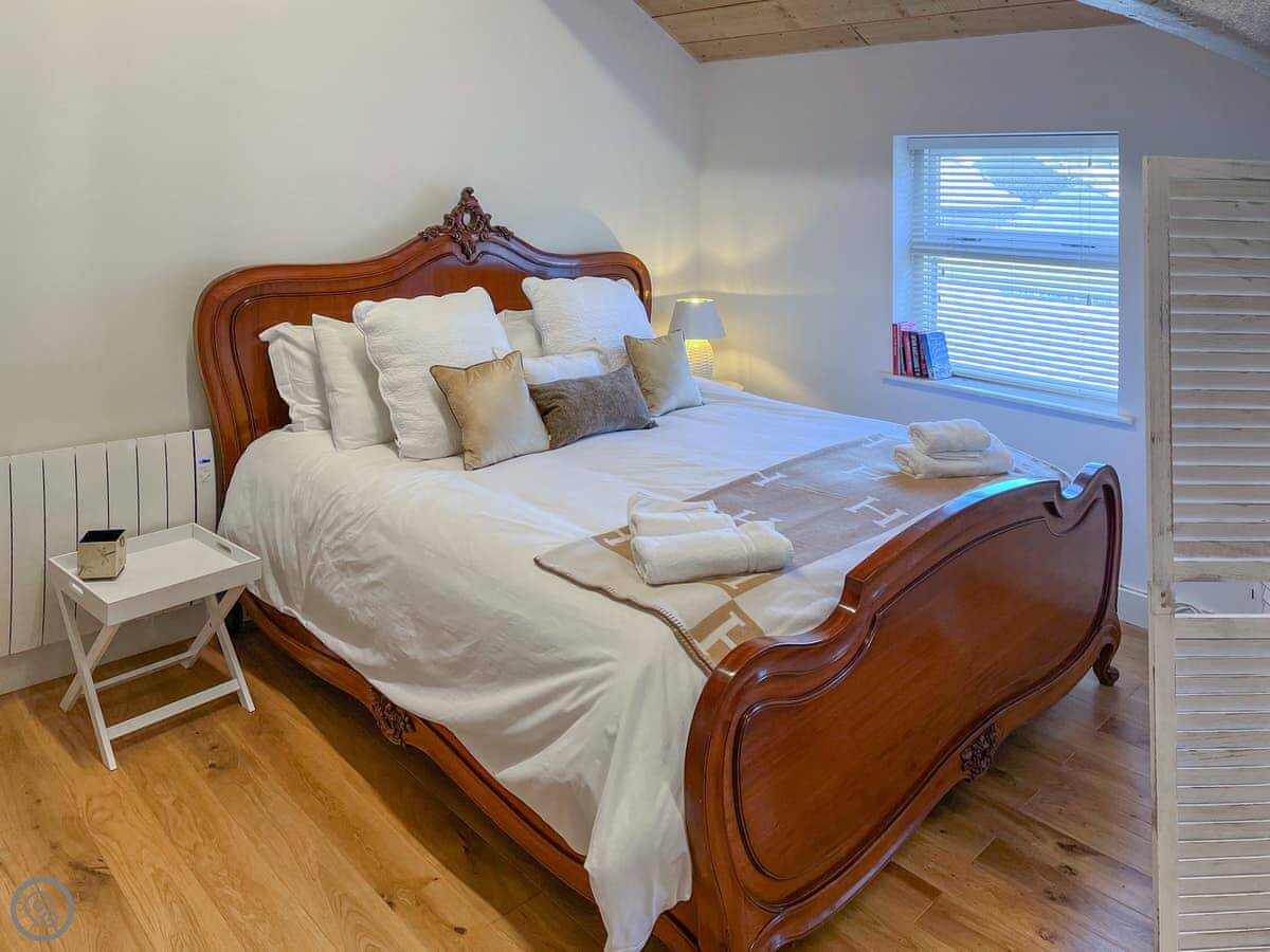 The Ilkley Loft Suite is a studio apartment on the first floor of a building in the middle of town. It sleeps two. The bedroom area has a king size bed. All the living space is open plan: kitchen, dining table, and sofa. The bathroom with a shower cubicle is downstairs.