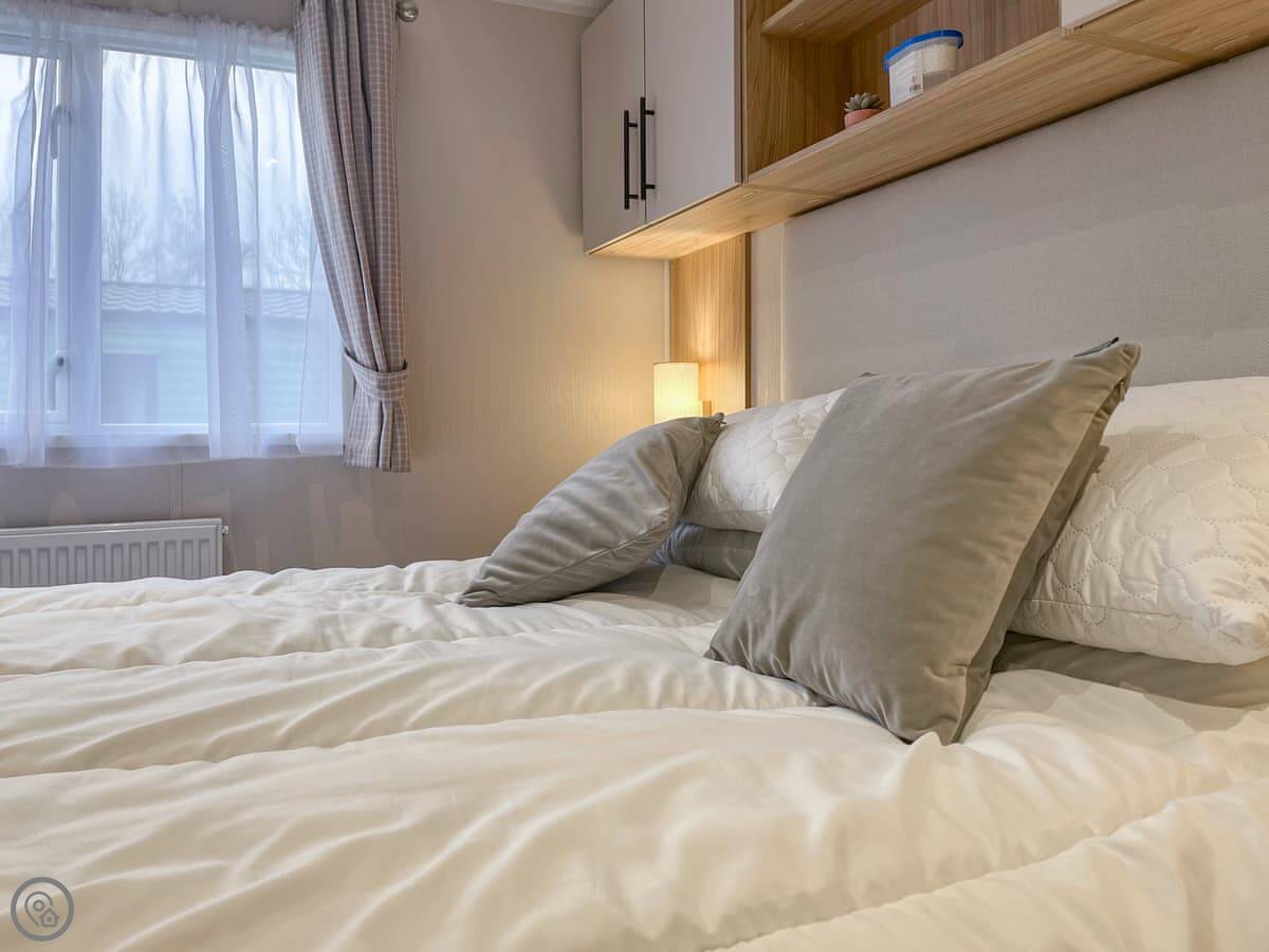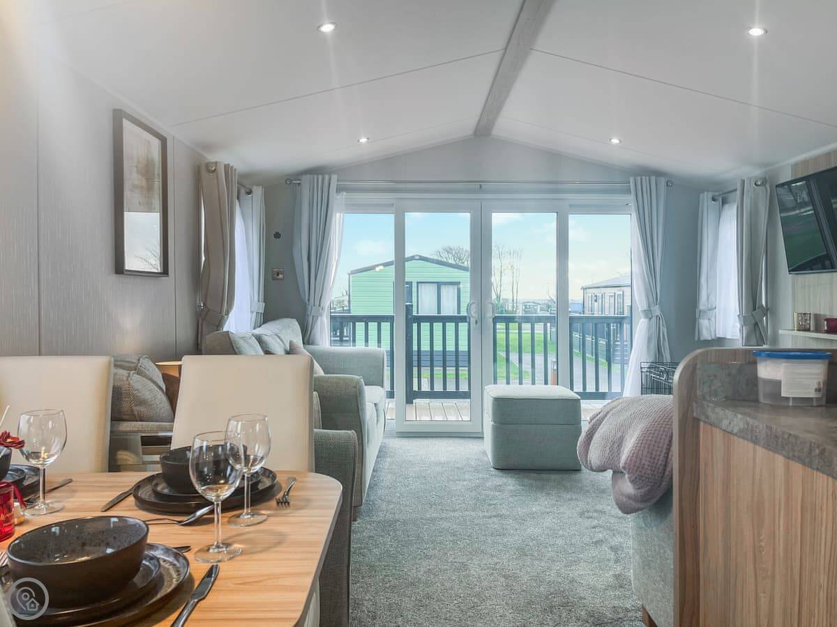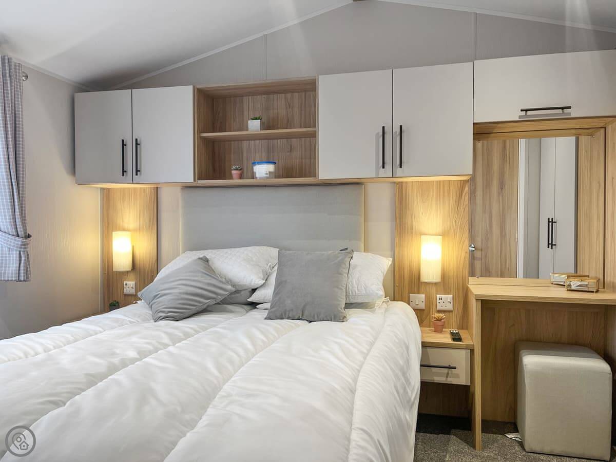 It sleeps four, in two bedrooms. One double with an ensuite toilet, and one twin. There's also a sofa bed in the lounge if you need it. It's a 4 Star lodge, so it's modern and well kept. You can bring one dog.
