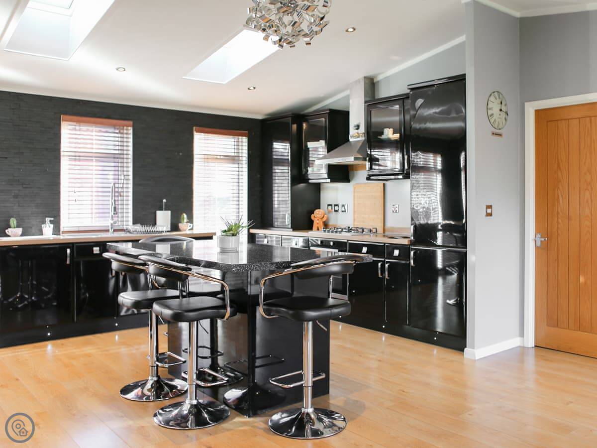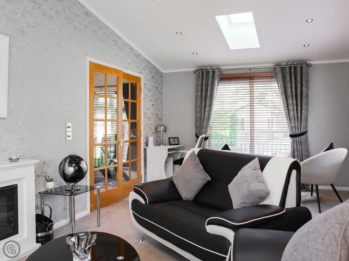 This is Stag Lodge, on the edge of Auchterarder. It's a detached lodge on its own bit of land, so it's quiet. You get fields at the back.