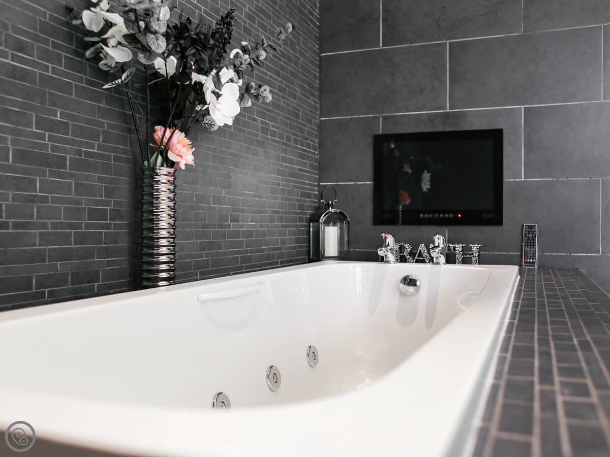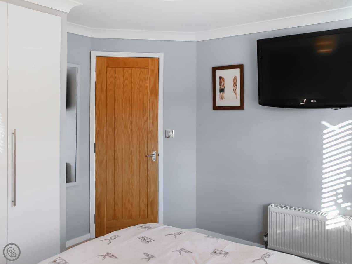 It sleeps four. Two bedrooms, one bathroom. The rating is 5 Star, which means it’s well-finished. The place is bright, lots of windows. The main bedroom has its own shower. The bathroom has a jacuzzi bath with a TV in there, if that's your thing.