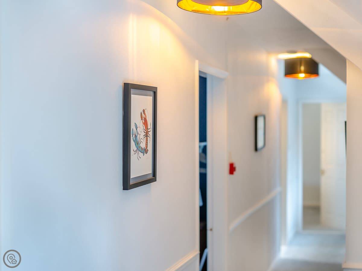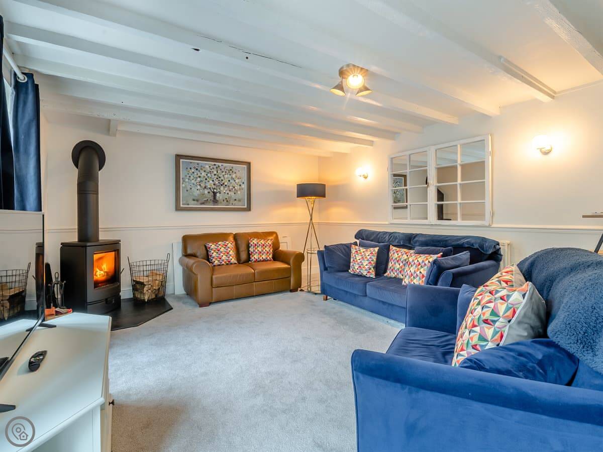 The place is a restoration, so it's got old features kept in. There are beams, a bread oven in the dining room, and two log burners. The stairs are there, but they're painted and a bit narrow. You just need to take care on them.