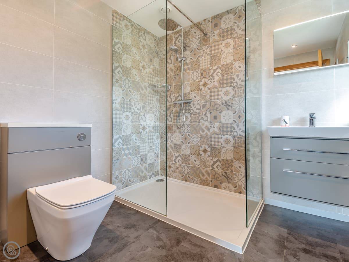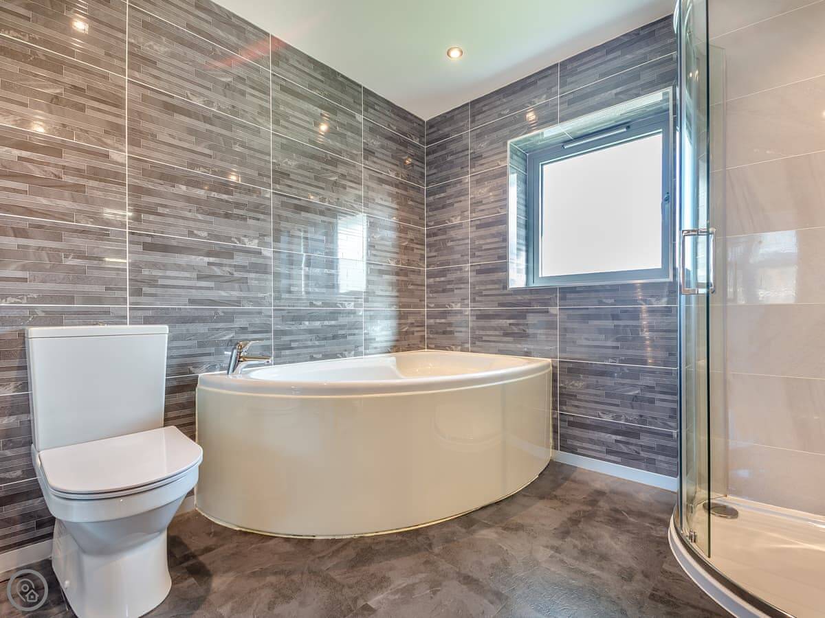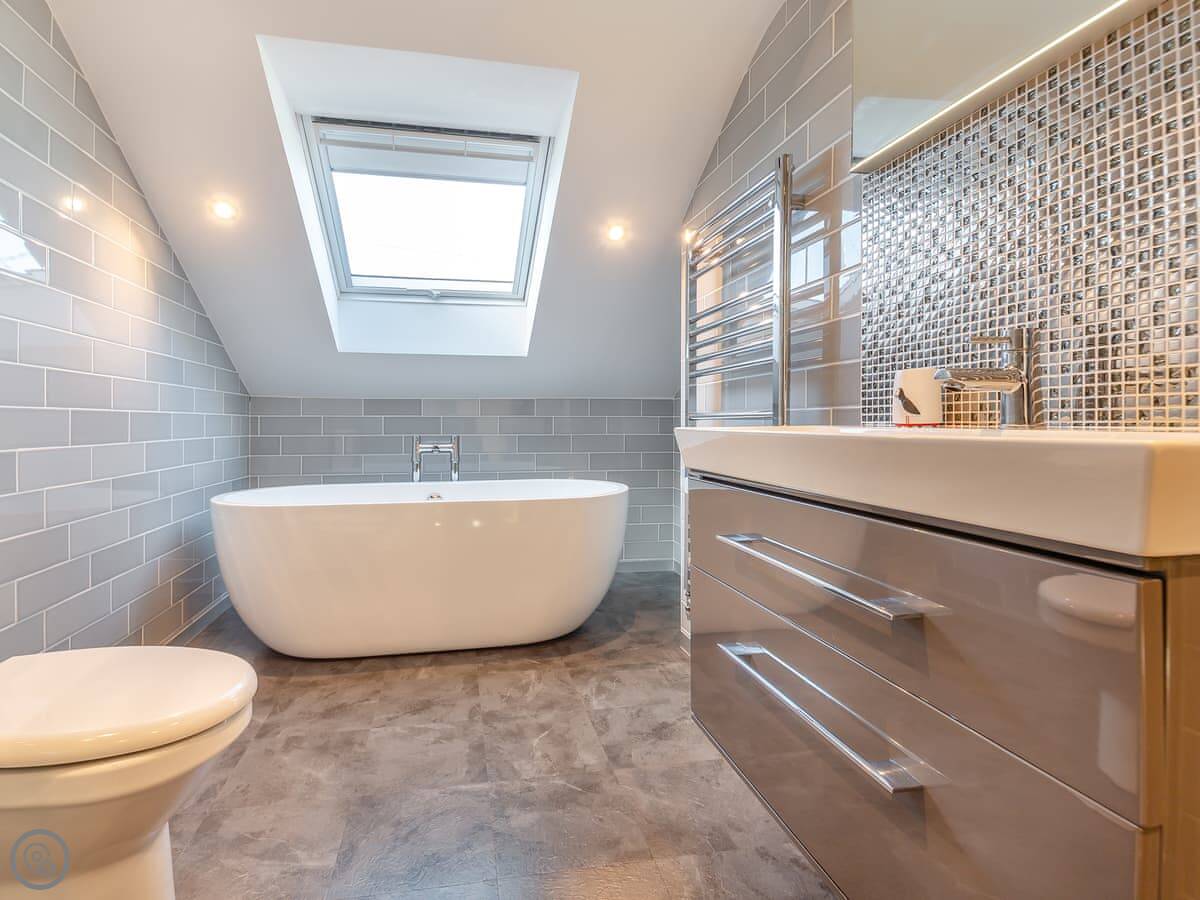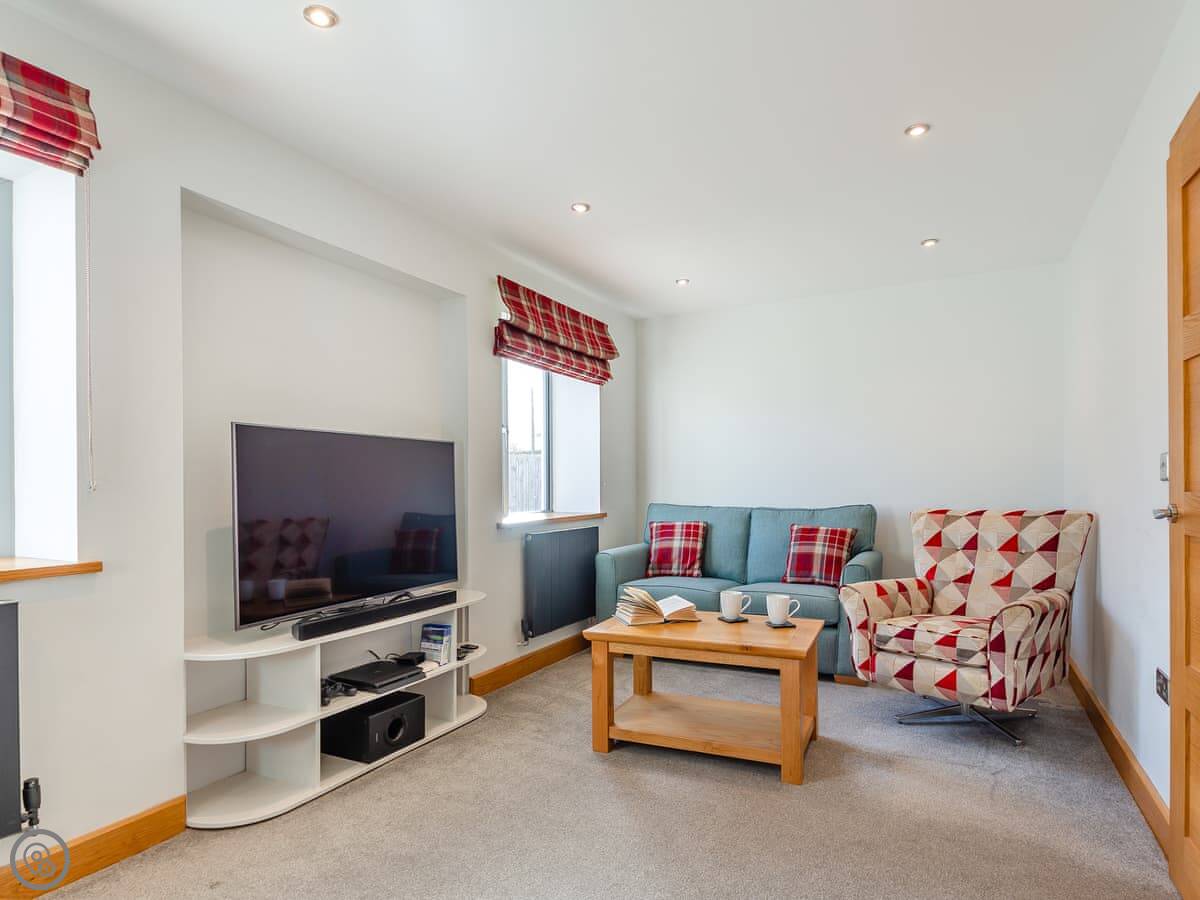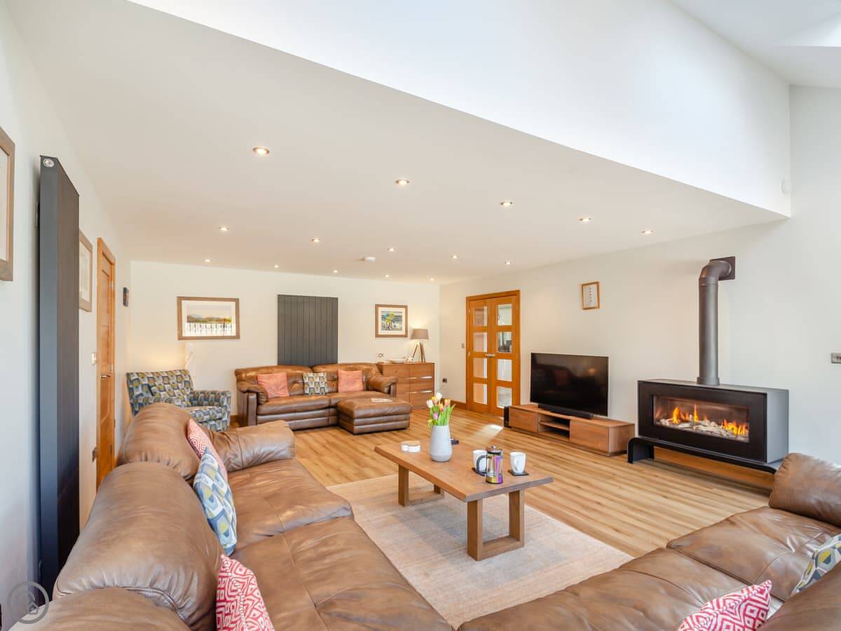 The main bit is open plan: kitchen, dining, lounge. The lounge has one of those electric log-effect fires. It’s comfortable, not huge. Doors open out to a balcony with a hot tub on it. That’s the feature. You can see the castle from it. The hot tub takes a while to heat up when you first get here, so don't expect it to be ready the evening you arrive.