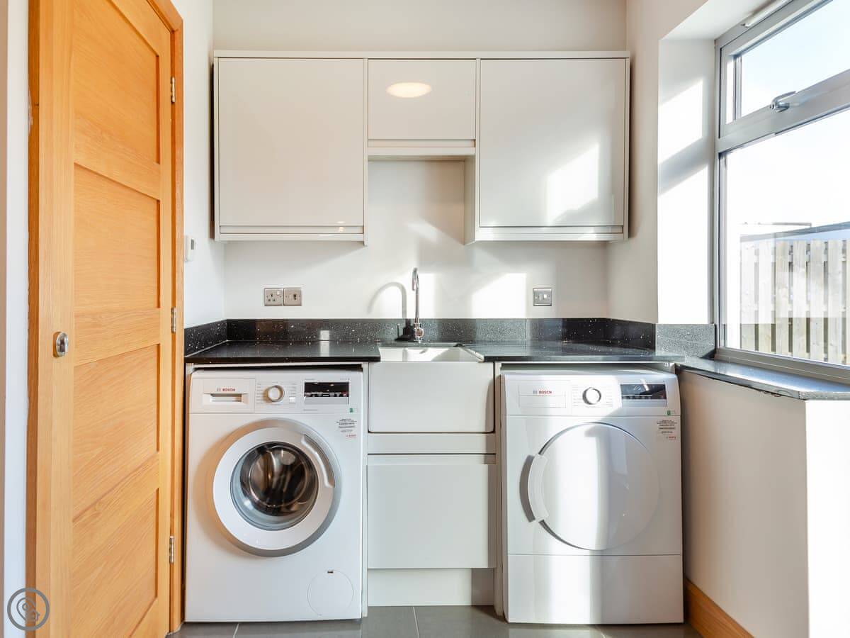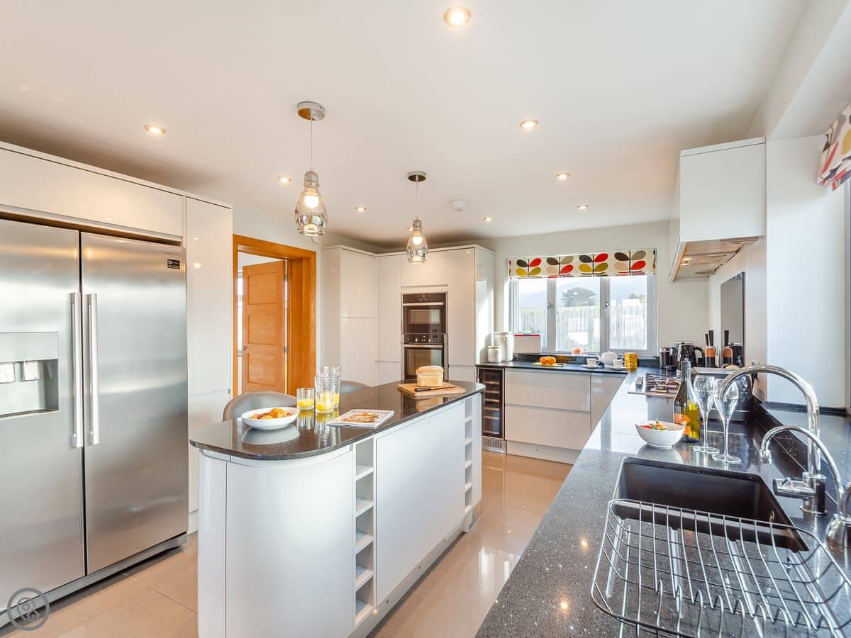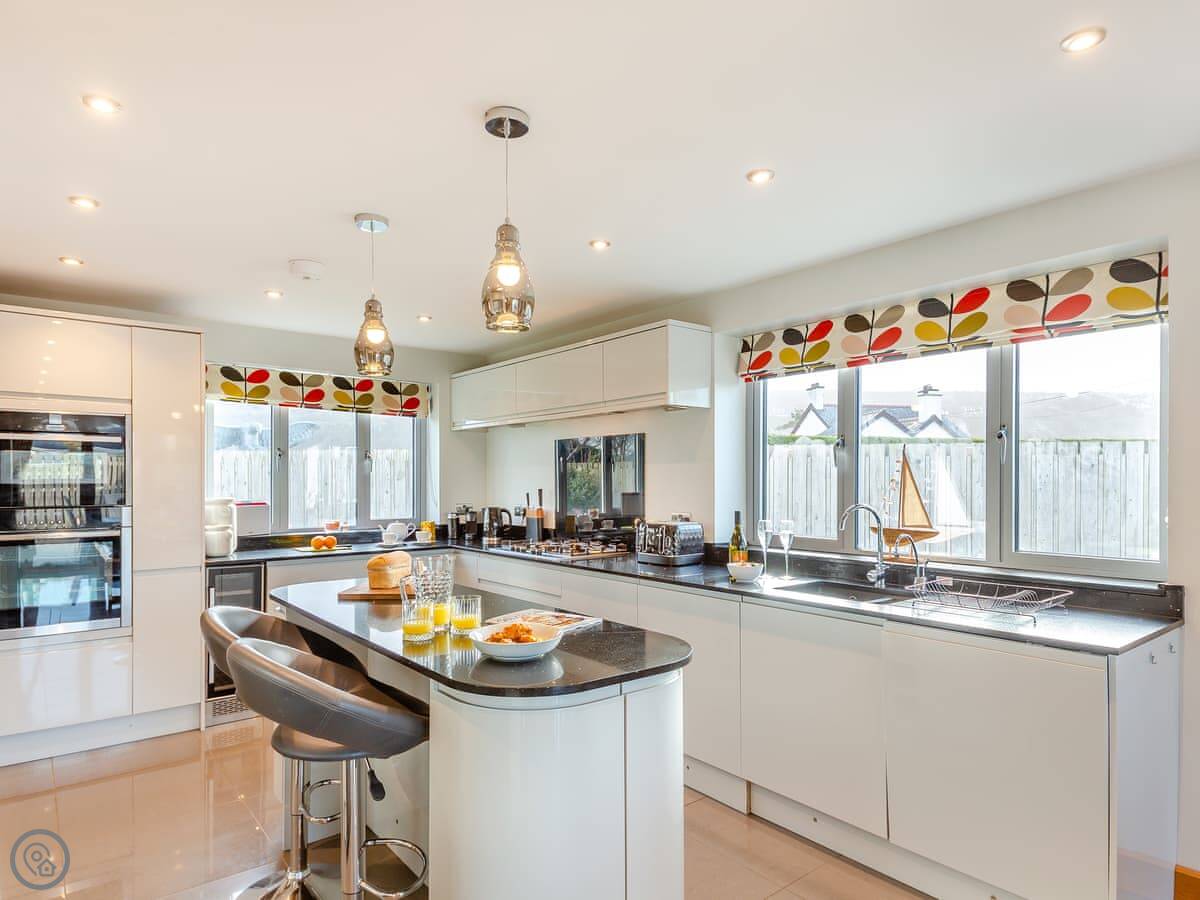 The house has a 5 Star rating. That means it’s well-finished. You get bedding and towels. There’s a washing machine, dishwasher, WiFi, parking. We can take up to two dogs. There’s a cot and highchair if you need them.
