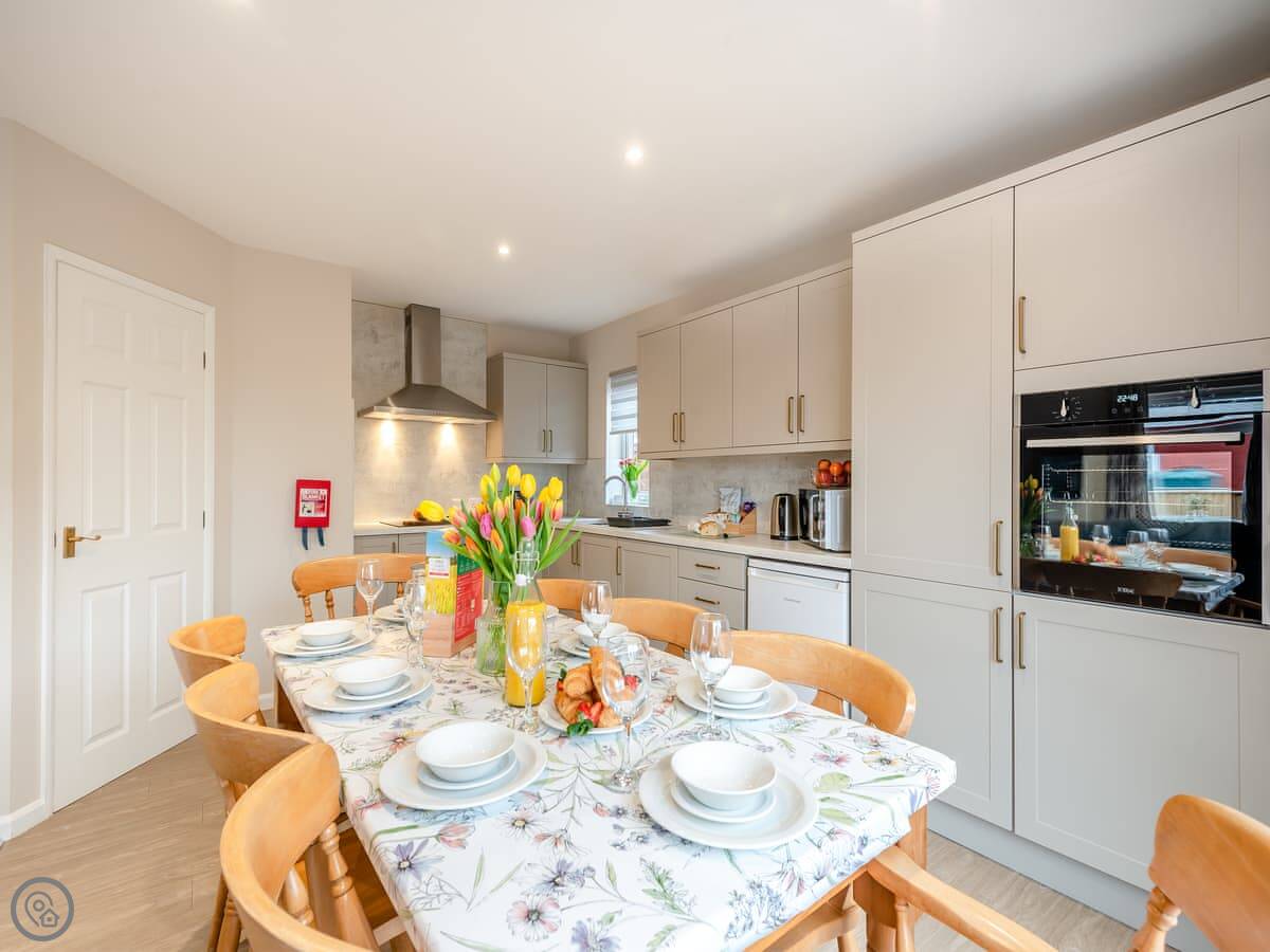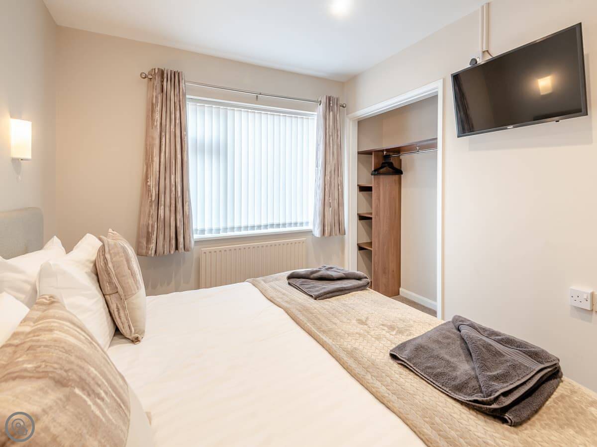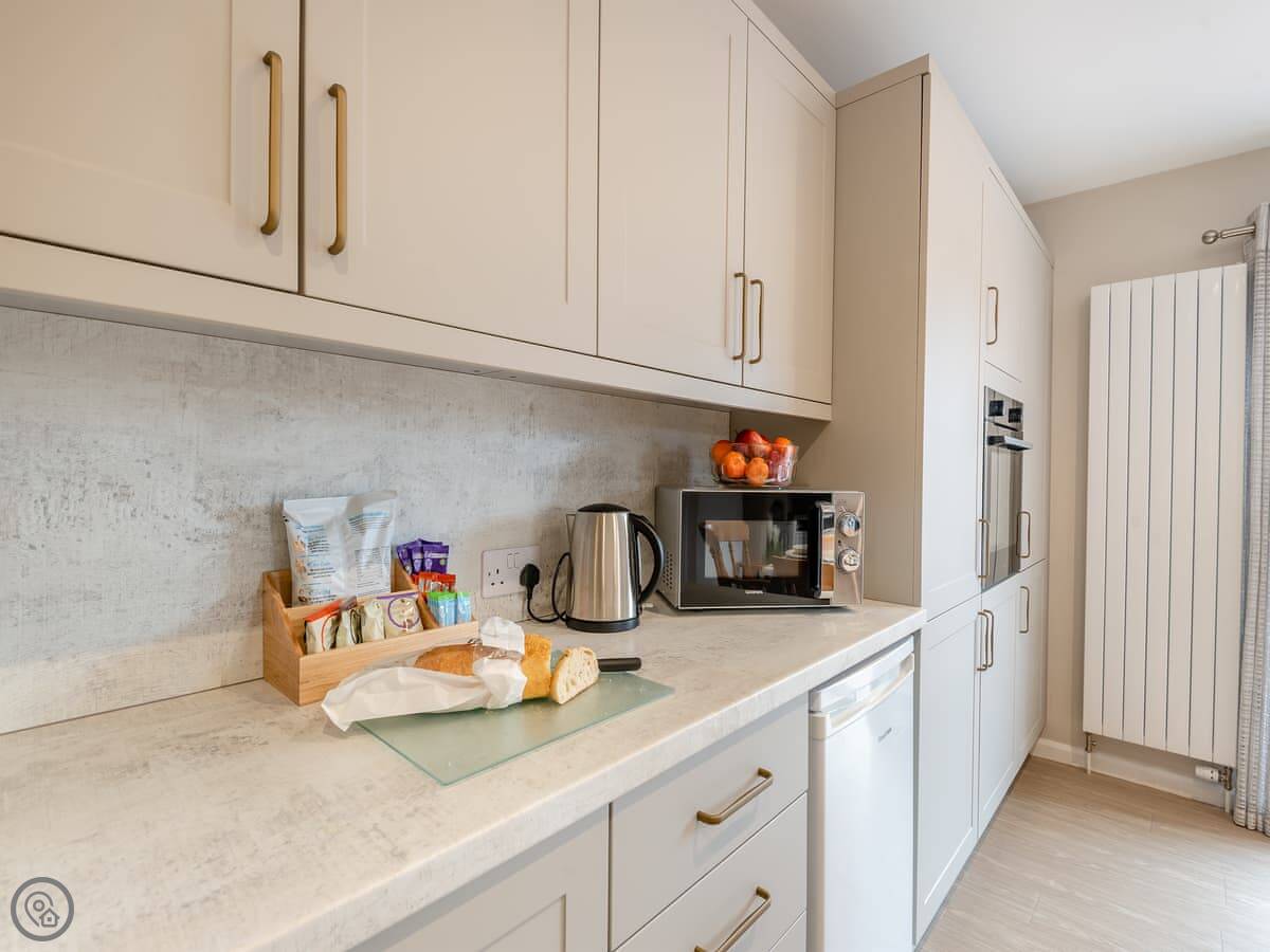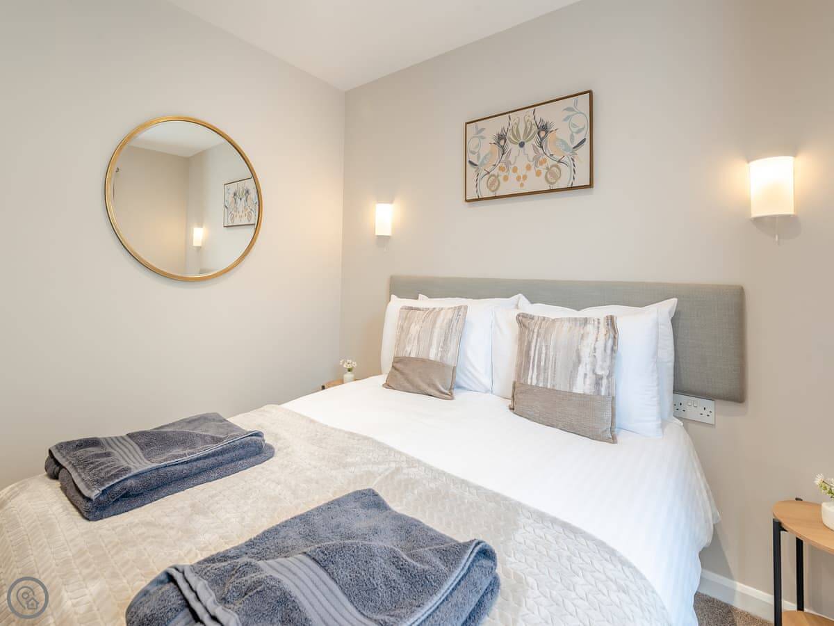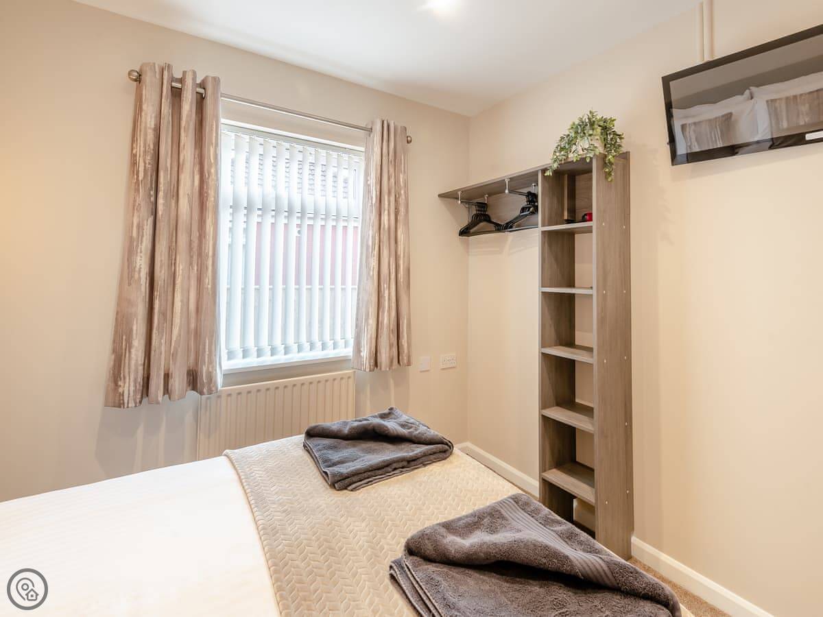 What's here: the garden has a patio. There's a TV and WiFi. Bedding and towels are included. There's a cot if you need it. You can park on site. The kitchen has what you'd expect. Pets are allowed, which is why I mentioned the garden being enclosed.