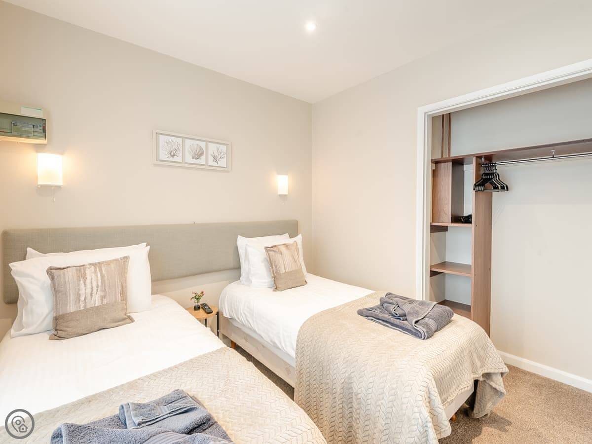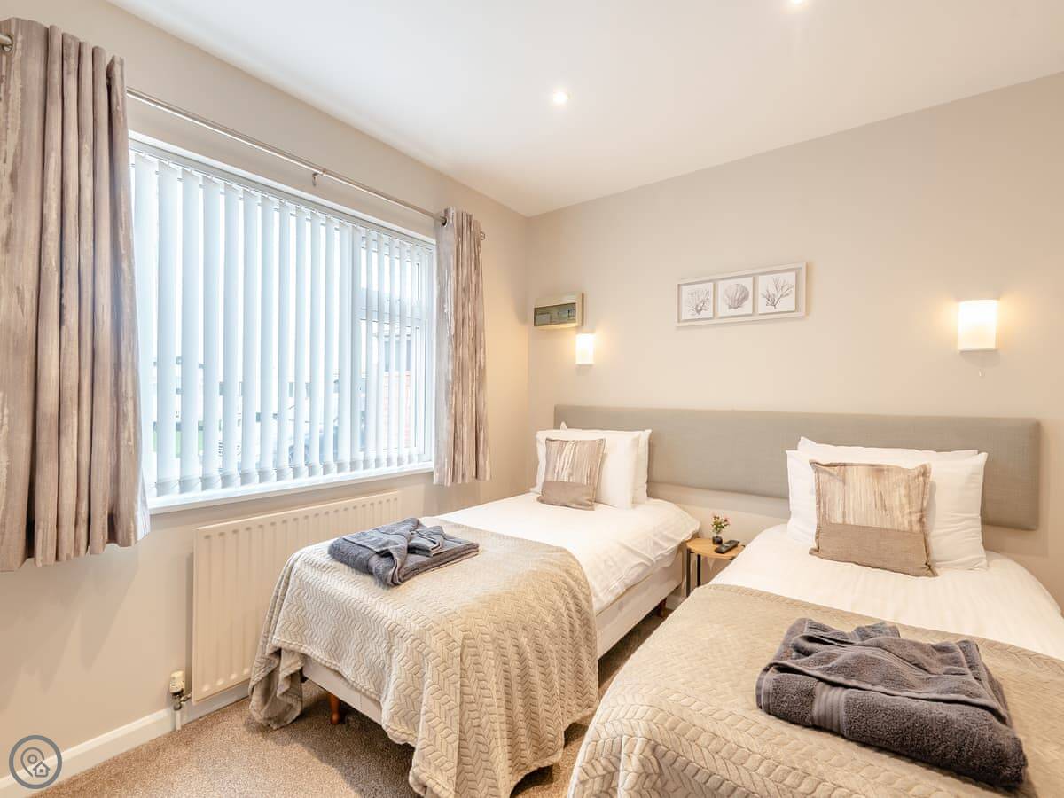 It sleeps six. Three bedrooms, one bathroom with a shower. Everything's on the ground floor, so no stairs to worry about. It's got a 4 Star rating. It's been done up recently, so it's in good order. It's clean and modern inside.