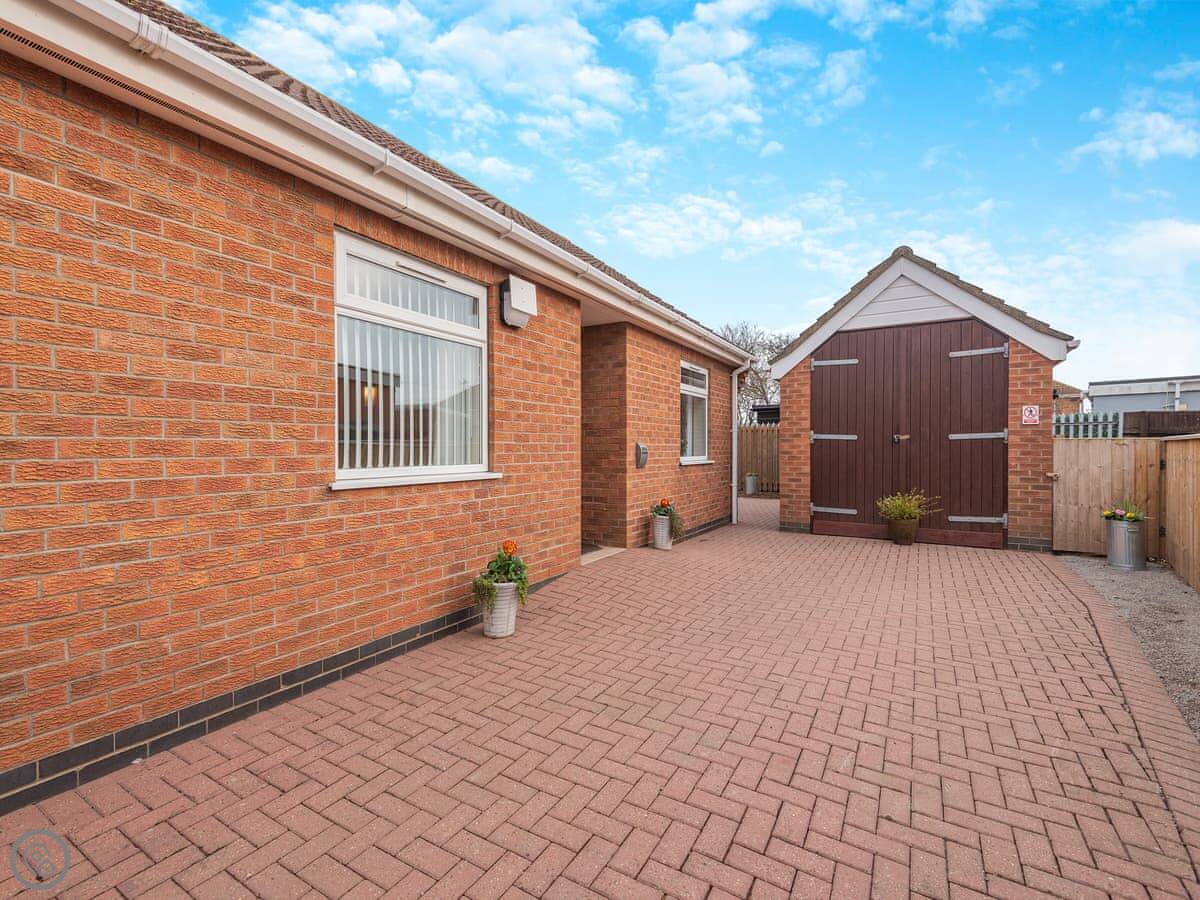 This is Snowdrop, a bungalow in Ingoldmells. It's detached and in a quiet spot, so no through traffic. The garden is private and enclosed, which is good if you've got kids or a dog. There's parking right outside.