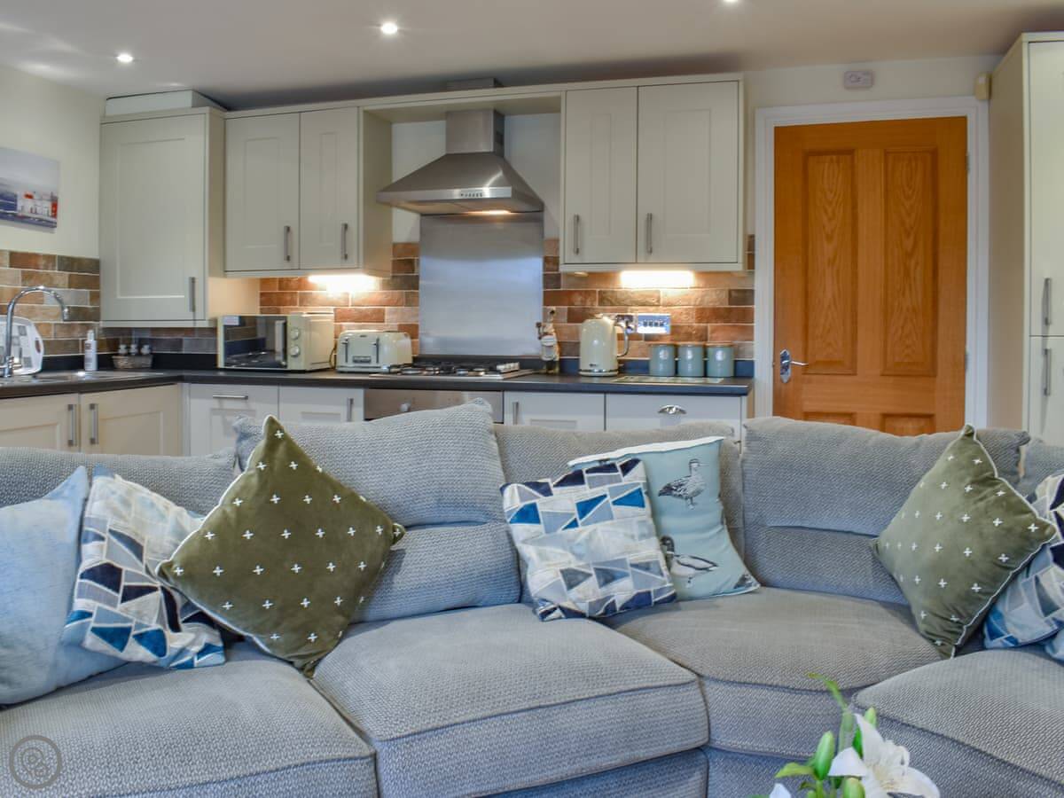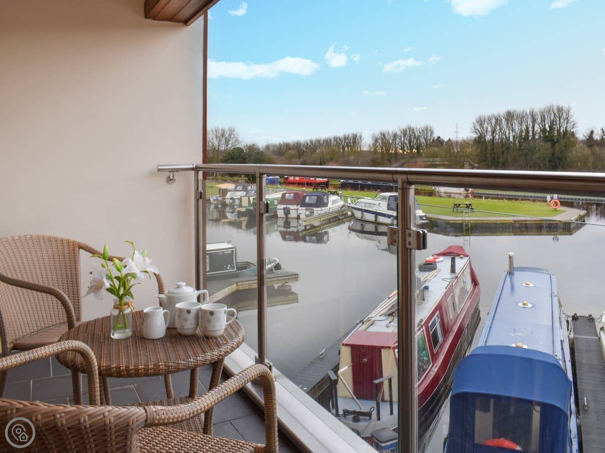 Sailing By is a one-bedroom apartment on the first floor at Tewitfield Marina. It’s for two people. You get a private balcony that looks right out over the marina. It’s glass-fronted so you can sit inside and watch the boats if the weather's bad.