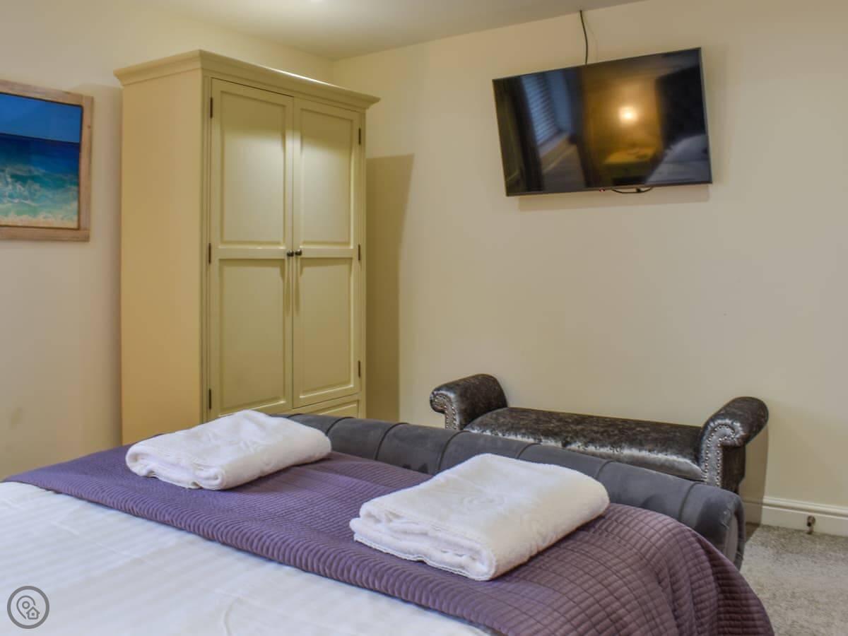 The place is modern and clean. It’s got a 4 Star rating. All the bedding and towels are included. It’s open plan. There’s a kitchen area with a dishwasher and washing machine, then the living space with a sofa and TV. The bedroom has a kingsize bed. The bathroom has a shower. We have an electric vehicle charger on site.