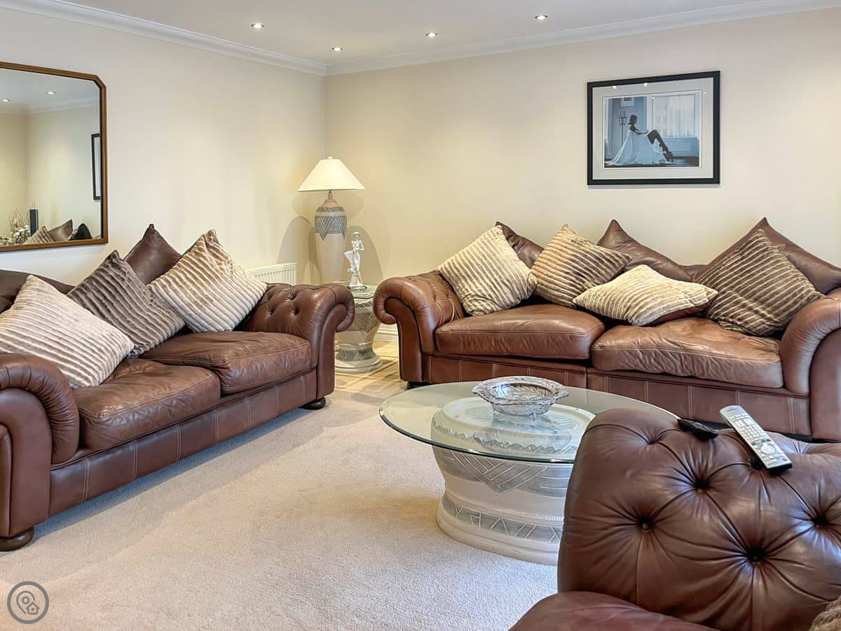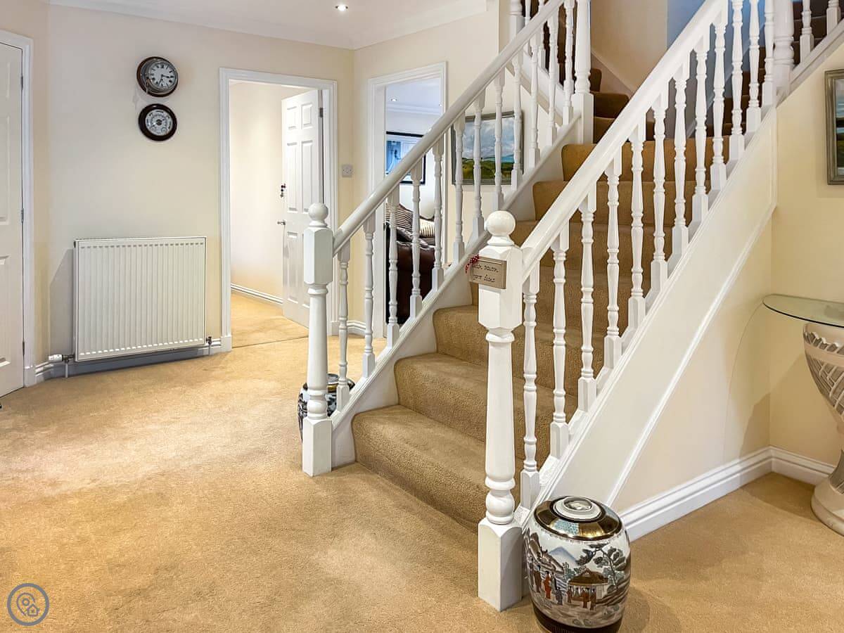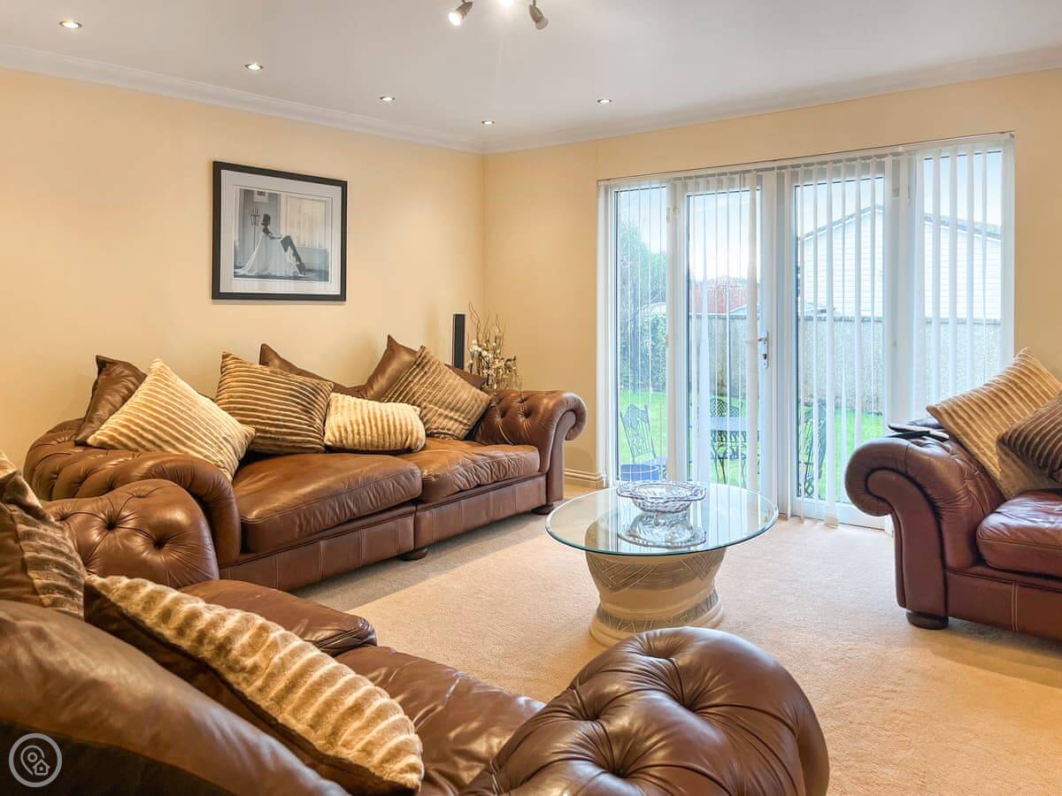 It sleeps ten, with five bedrooms. Three of those have their own bathrooms attached which helps a lot with a group. There's another family bathroom as well. It's got a 4 Star rating, so it's well equipped and comfortable.