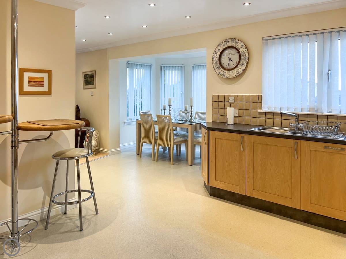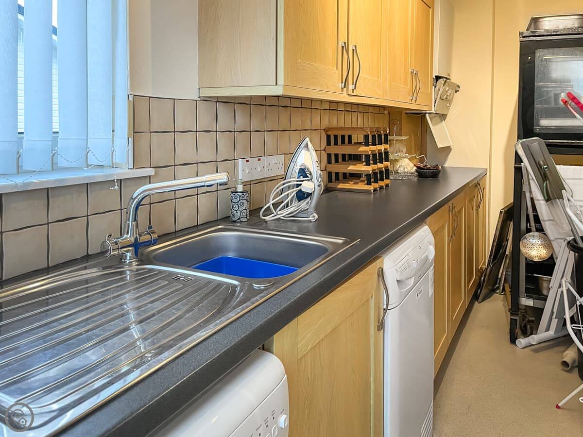 The kitchen is big, with a dishwasher and washing machine. There's a dining table that fits everyone. The living room has plenty of seating and satellite TV. WiFi is included.