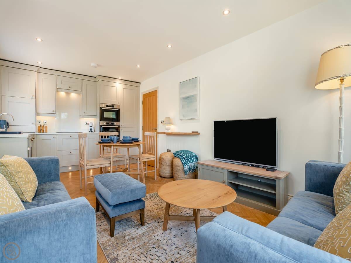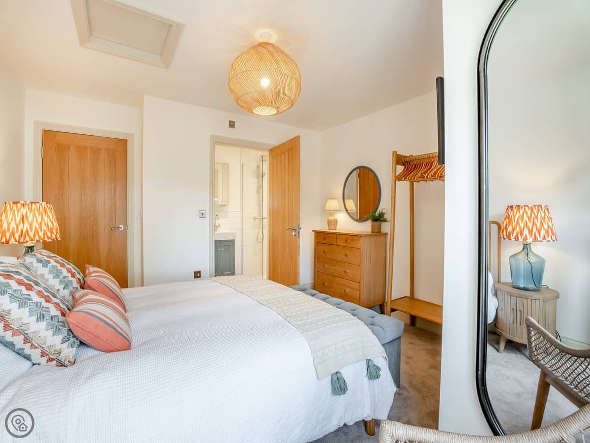It's for four people. Two bedrooms, one bathroom, plus another shower room off the main bedroom. It has a five star rating, so it's got things like a dishwasher, good Wi-Fi, an electric car charger and smart TVs. It's been done up by a local design company, so it looks smart.