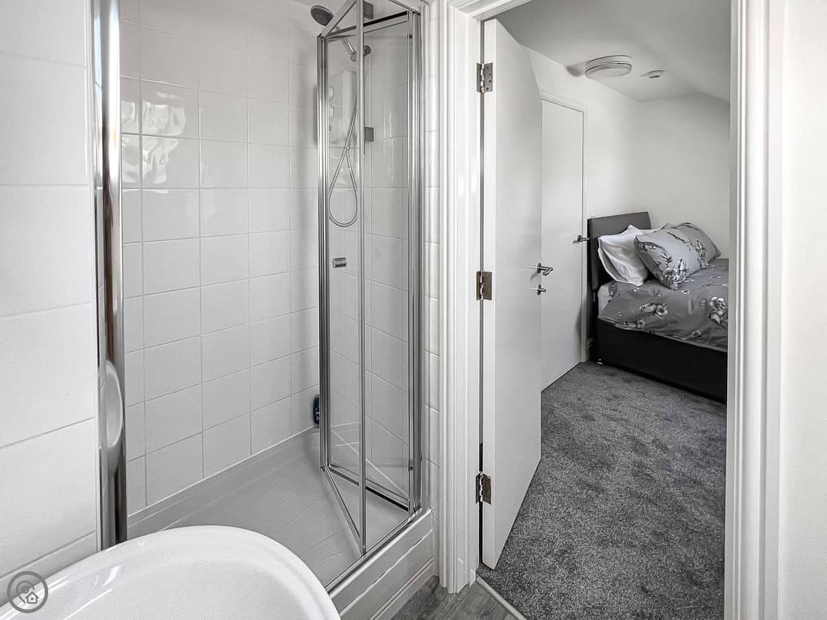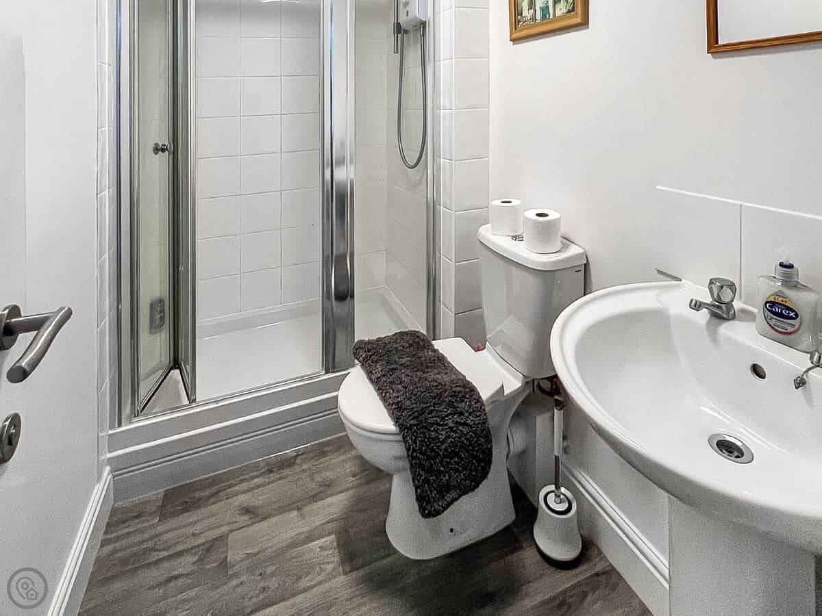 It sleeps six across three bedrooms. They're all doubles. Each bedroom has its own shower room, which is handy. There's also a sofa bed in a downstairs room if your group splits that way.