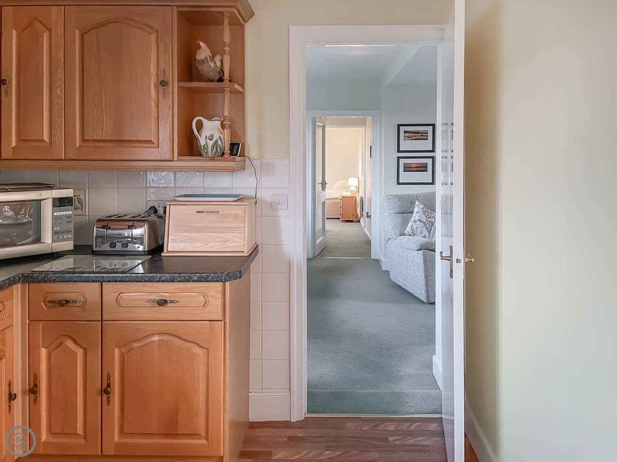 It's a 4 Star place. That means it's comfortable and has what you need. The living room has an electric fire for cool evenings. The kitchen is open plan and has a dishwasher and washing machine.
