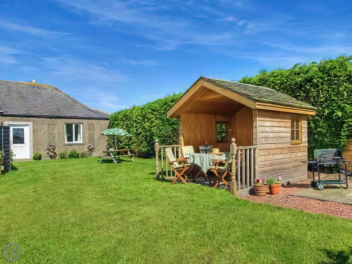 The garden is enclosed, which is ideal if you're bringing a dog or have kids. There's a summerhouse out there too. You get a clear view of the fields and it's very quiet.