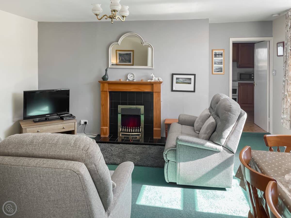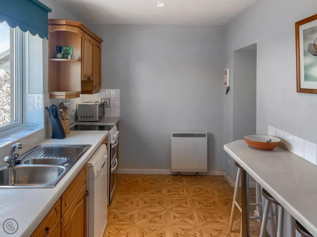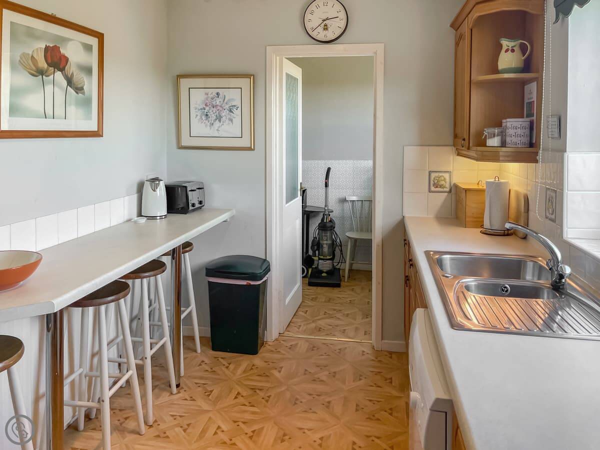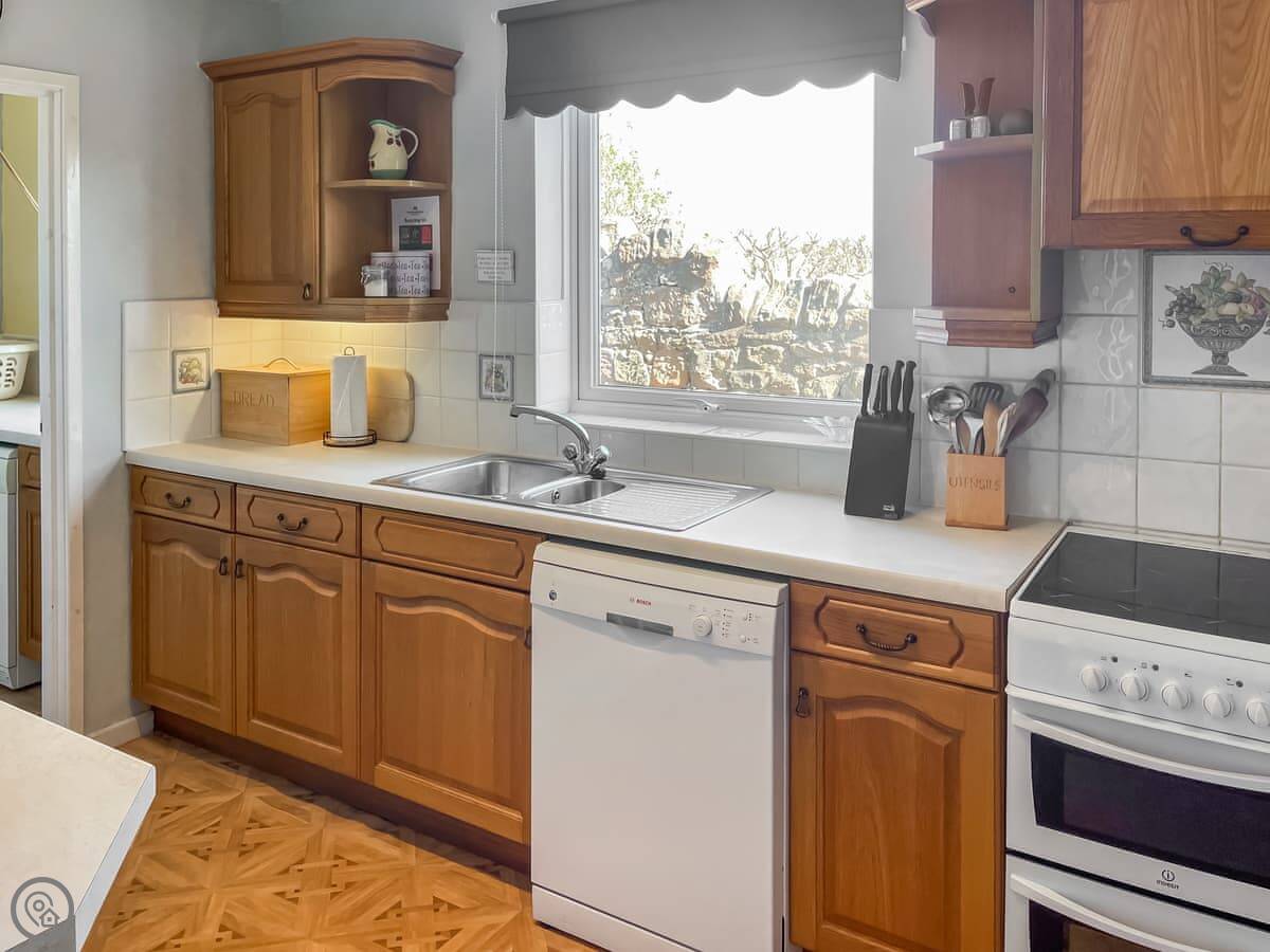 The kitchen is separate from the living area. It has a washer, dryer and dishwasher. There's an electric fire in the lounge. TV with Freeview. WiFi is available.