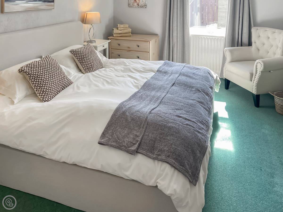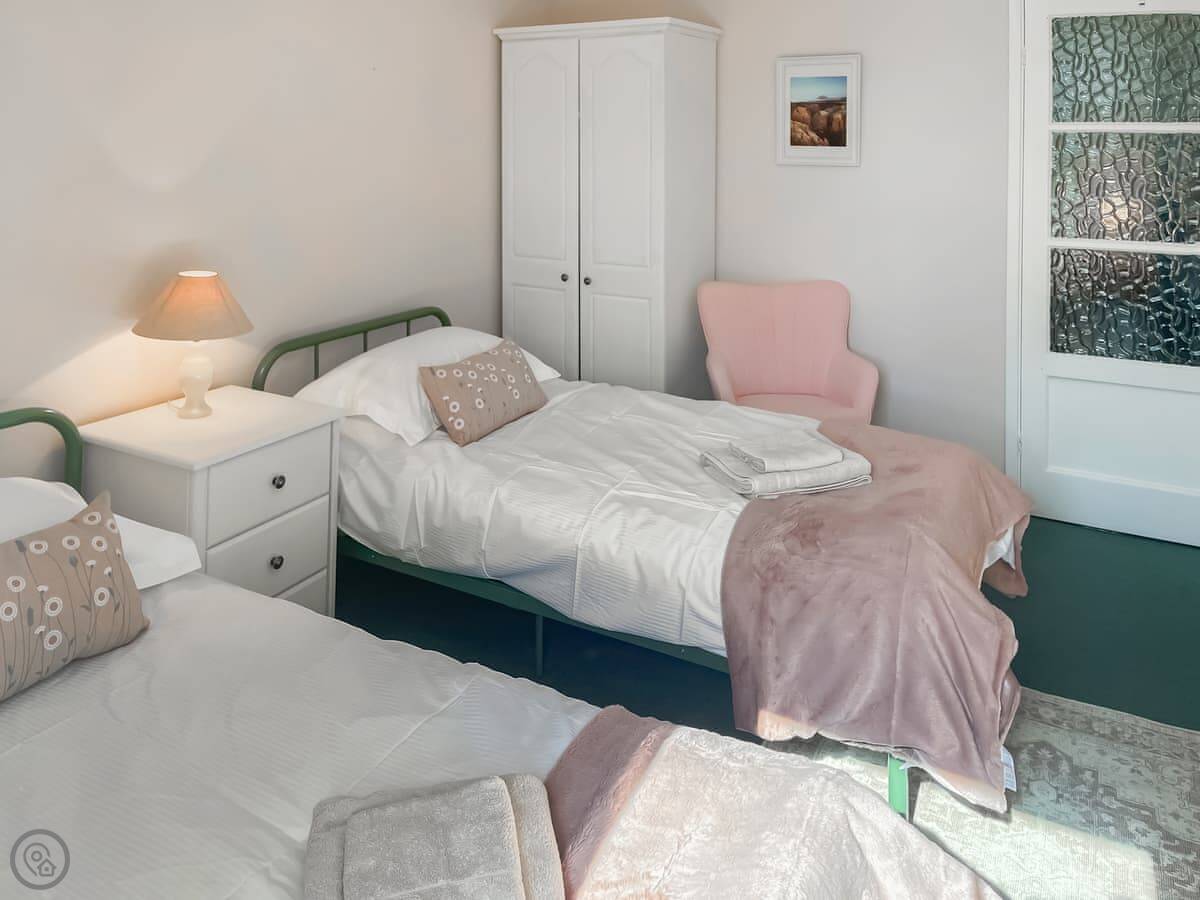 It sleeps six. Three bedrooms, two bathrooms. There's a king size bed and two twin rooms. The rating is 3 Star. It's clean and comfortable, not luxurious. Being single-storey, there are no stairs to worry about.