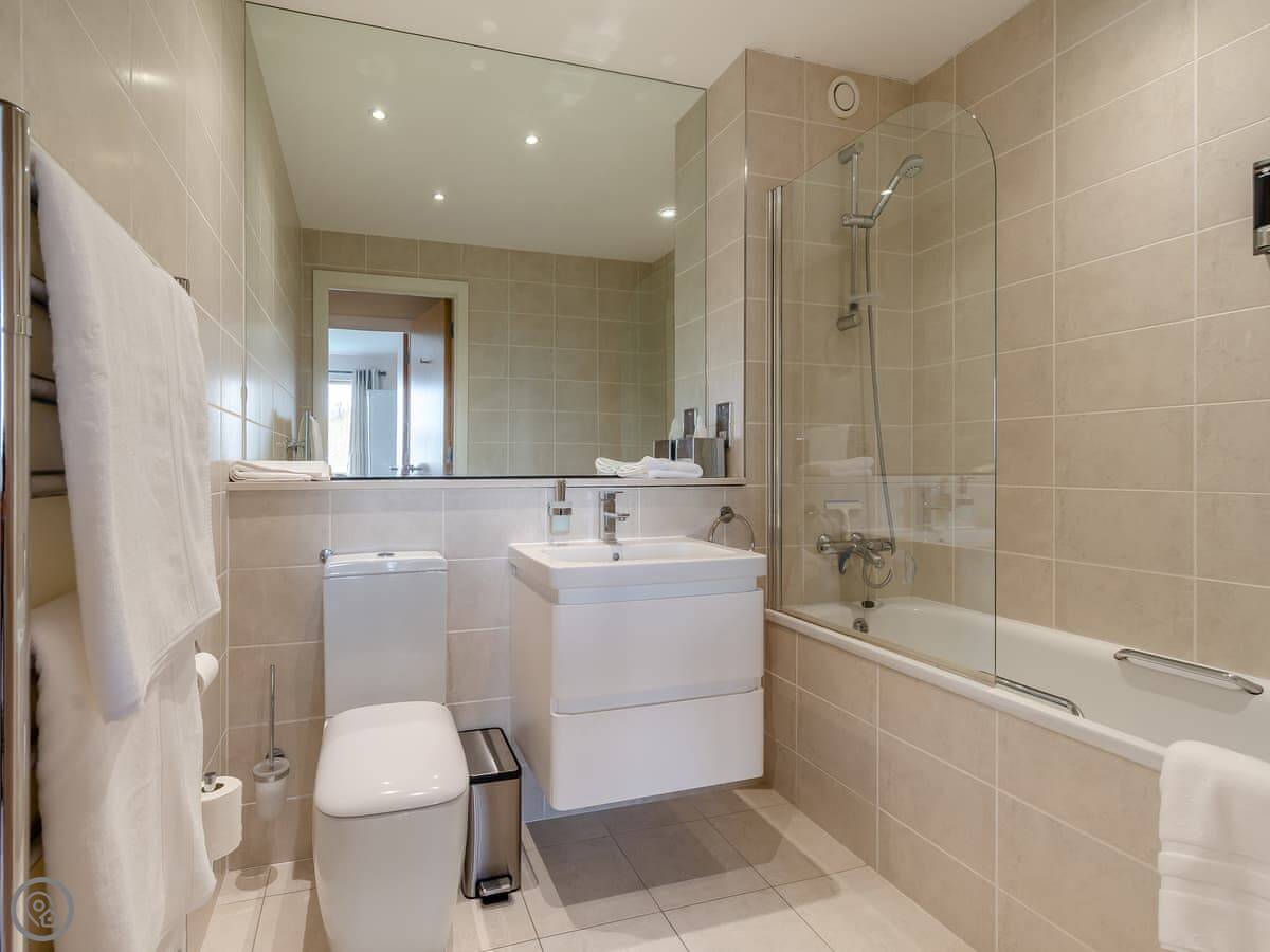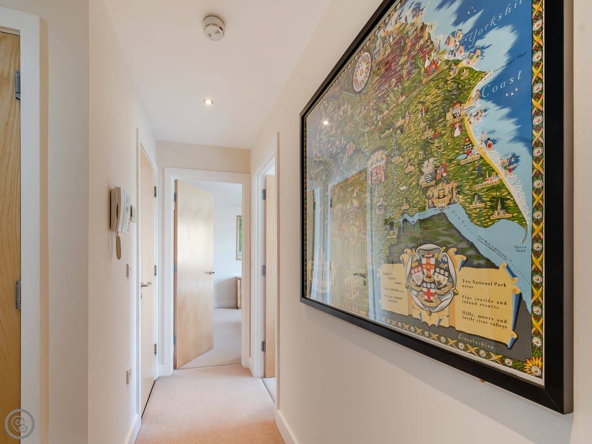 The Seagull Apartment is in Scarborough. It's a modern flat inside a bigger building, about 50 yards back from North Bay beach. You can see the sea from the front windows.