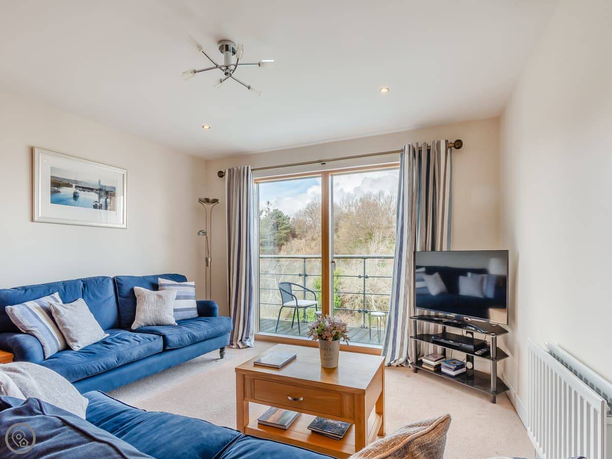 It sleeps six. Three bedrooms, two bathrooms. One is an en-suite. It's a 4 Star place, so it's comfortable and well kept. The living area is all open plan. Patio doors open onto a private balcony. It's not huge, but it's a nice spot.