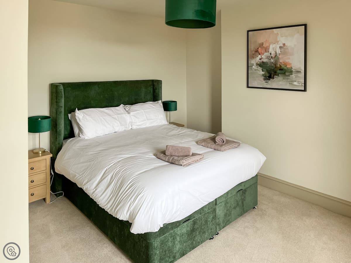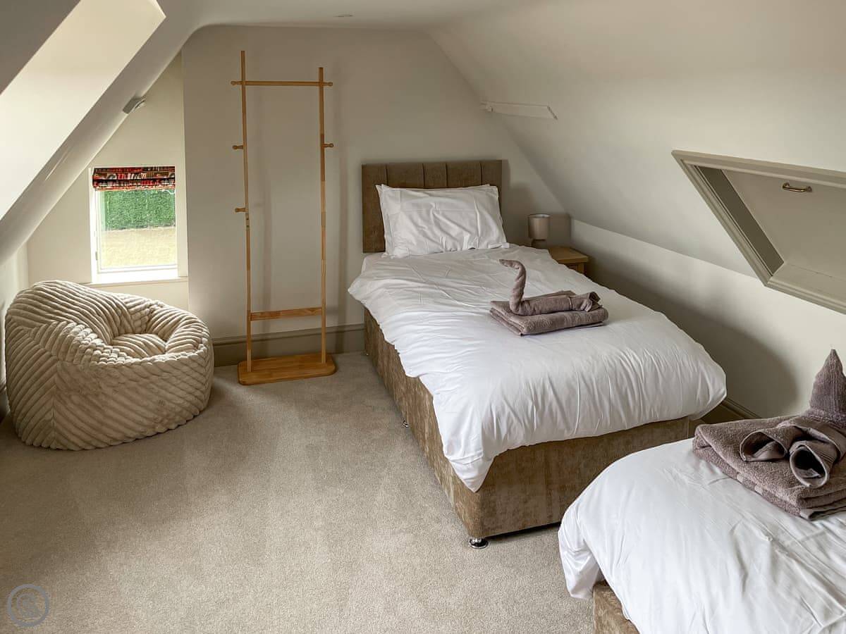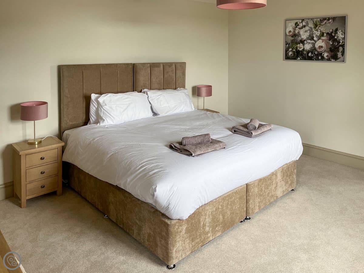 It sleeps eleven people. Five bedrooms, two bathrooms. The rating is 4 Star, so it’s well kitted out. The master bedroom is a good size with a kingsize bed. Two others are kingsize too. One room has a double and a single bed, and there are two twin rooms.