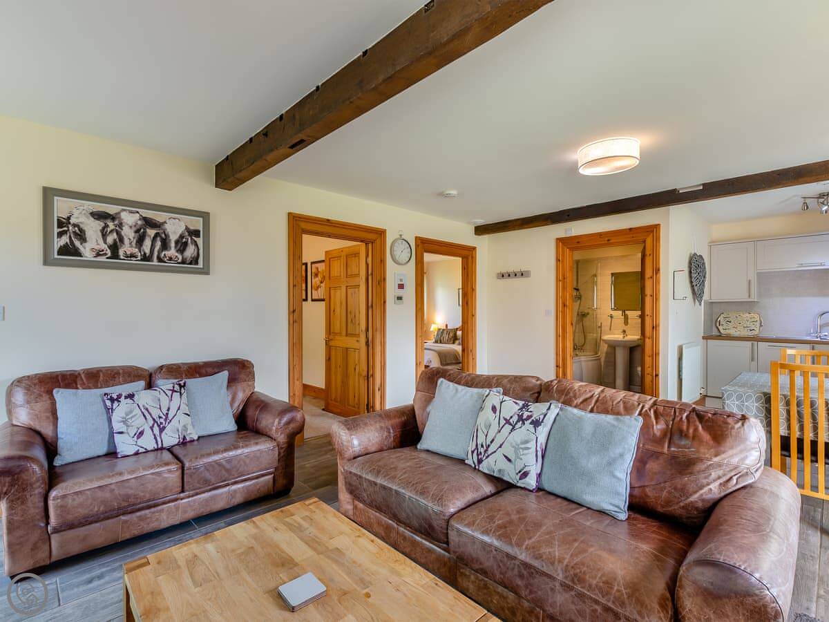 It says it's a luxury property, which means it's well finished and comfortable. Facilities include a washing machine, dishwasher, WiFi and parking. Bedding and towels are included. There's a cot and highchair if you need them. You can bring up to two dogs.