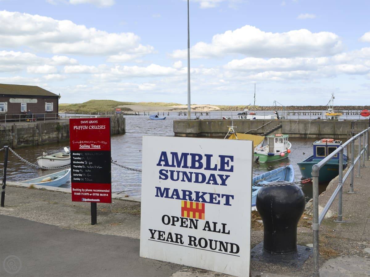 You're a few minutes' walk from the harbour. There's a small beach at Little Shore with some beach huts you can hire. Amble's got all the shops you'd need, and some decent places to eat. The Sunday market is good for a wander.