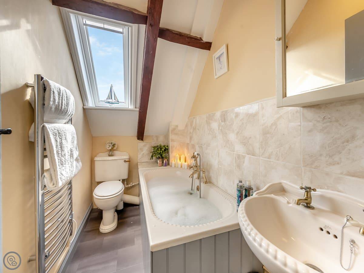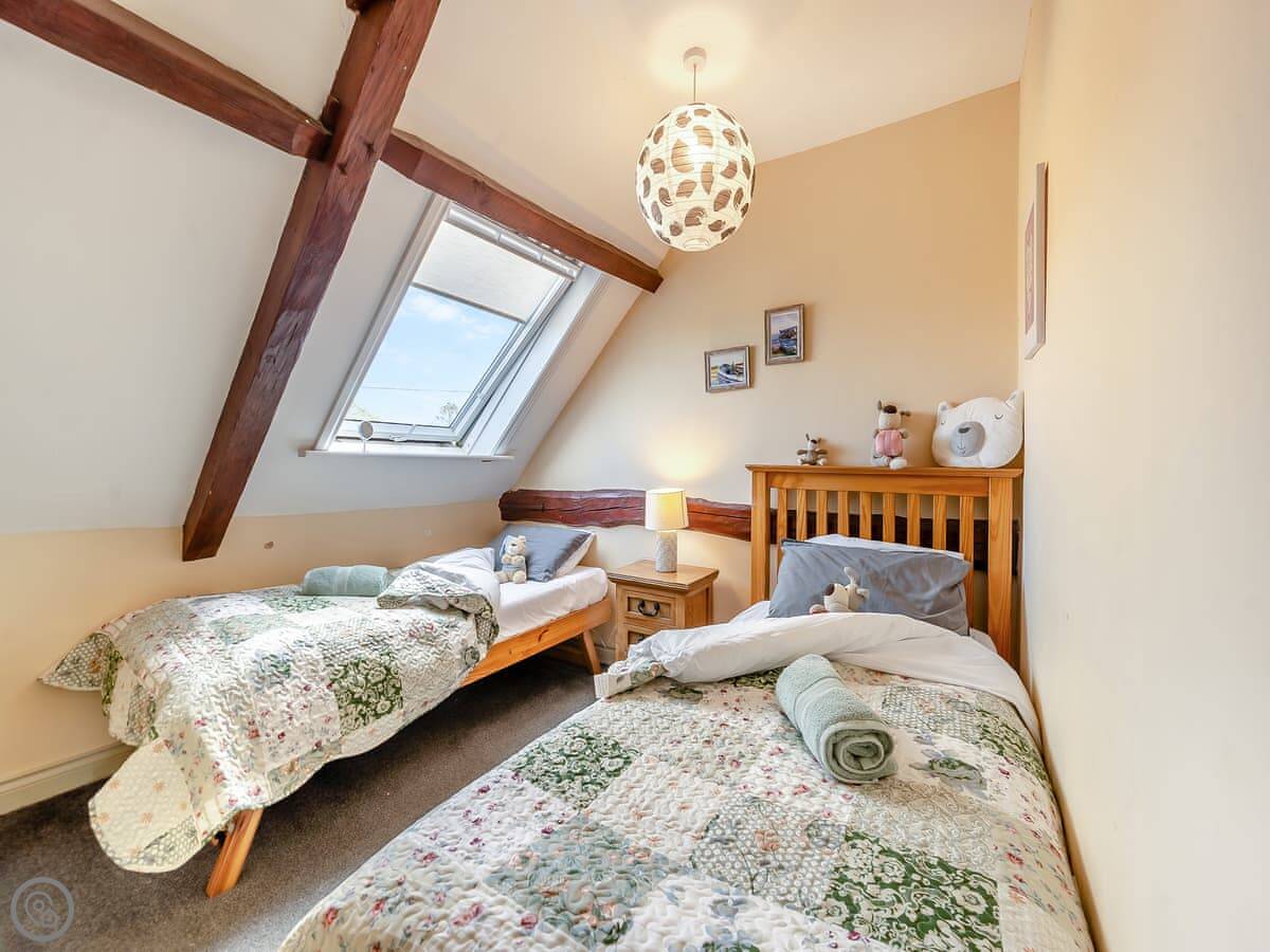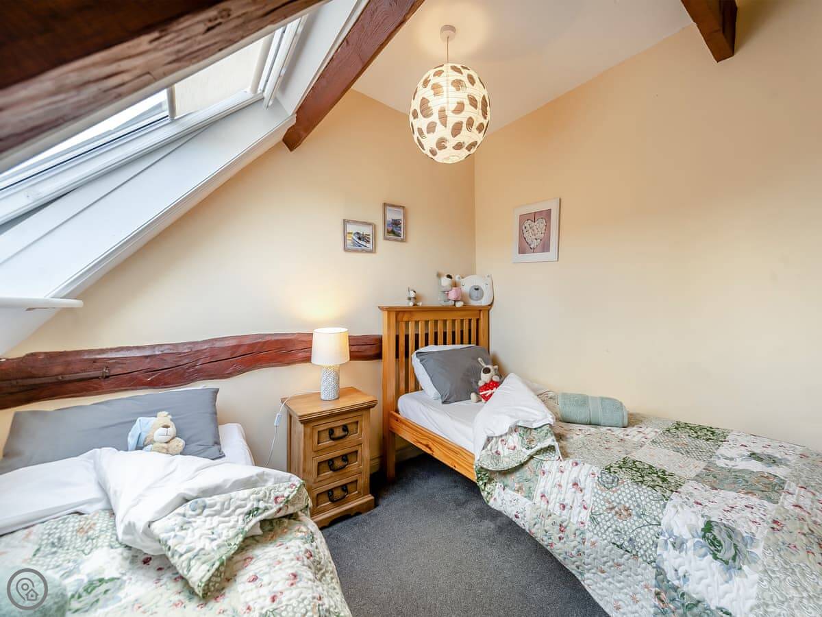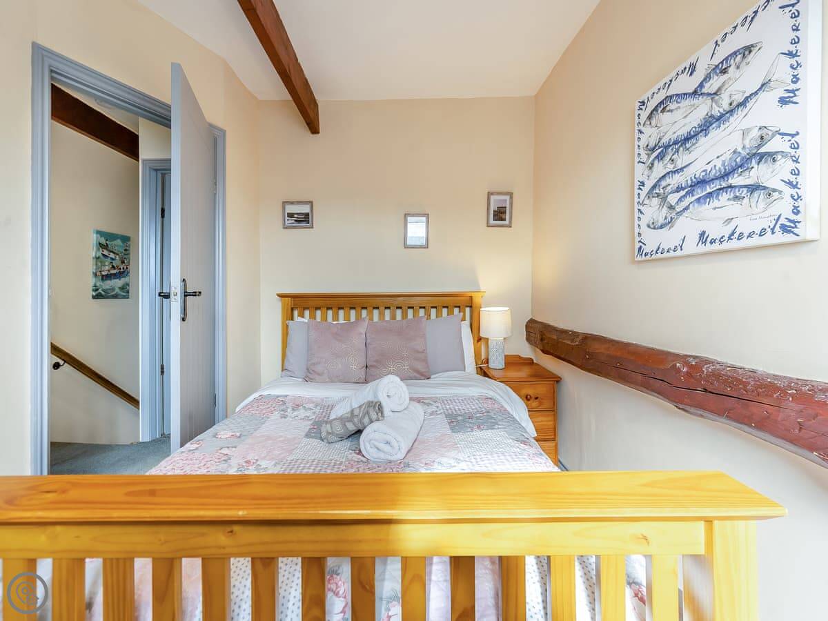 It sleeps two, in two bedrooms: there's a double and a small twin. The twin is really only suitable for children, as the beds are a normal single size but the room is cosy. One bathroom upstairs with a bath and shower over it.