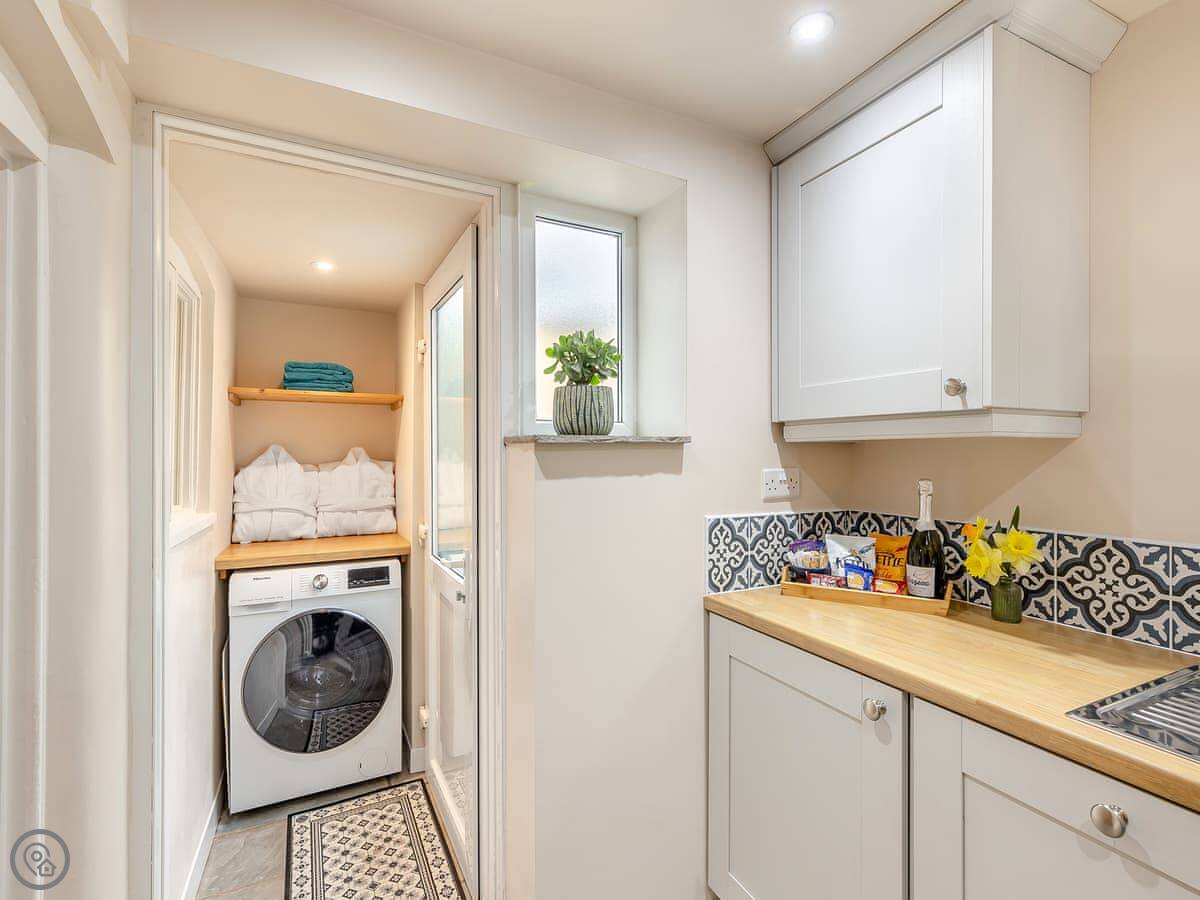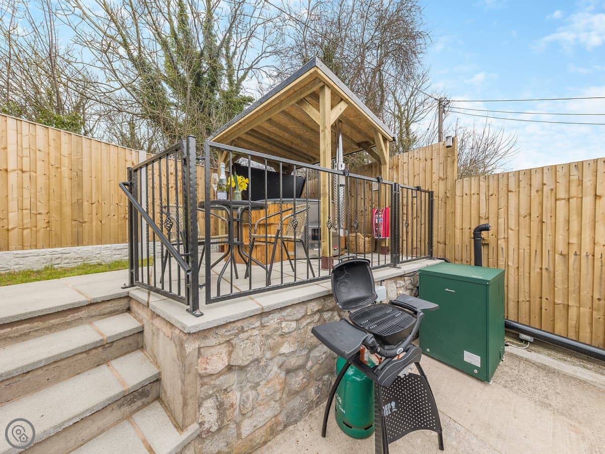 Outside, there's a private back garden with patio furniture and a barbecue. There's also a wood-fired hot tub.