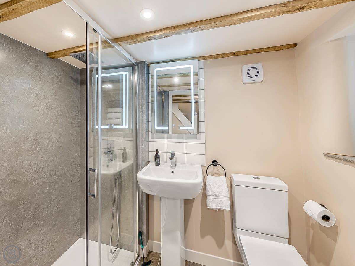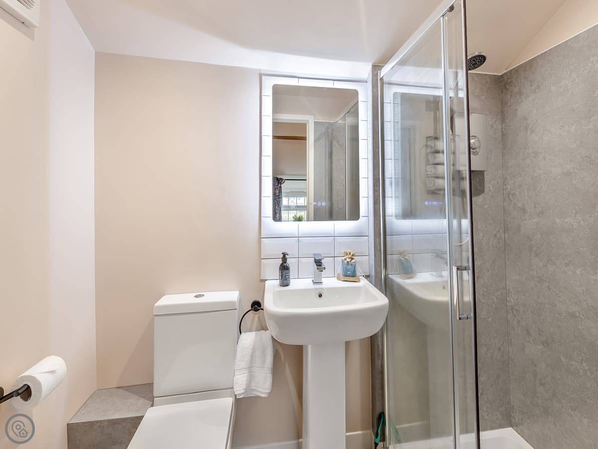 It's got a 4 star rating. It's comfortable and clean. There are two bathrooms, which is handy. One is downstairs, the other is ensuite upstairs. Both have walk-in showers.