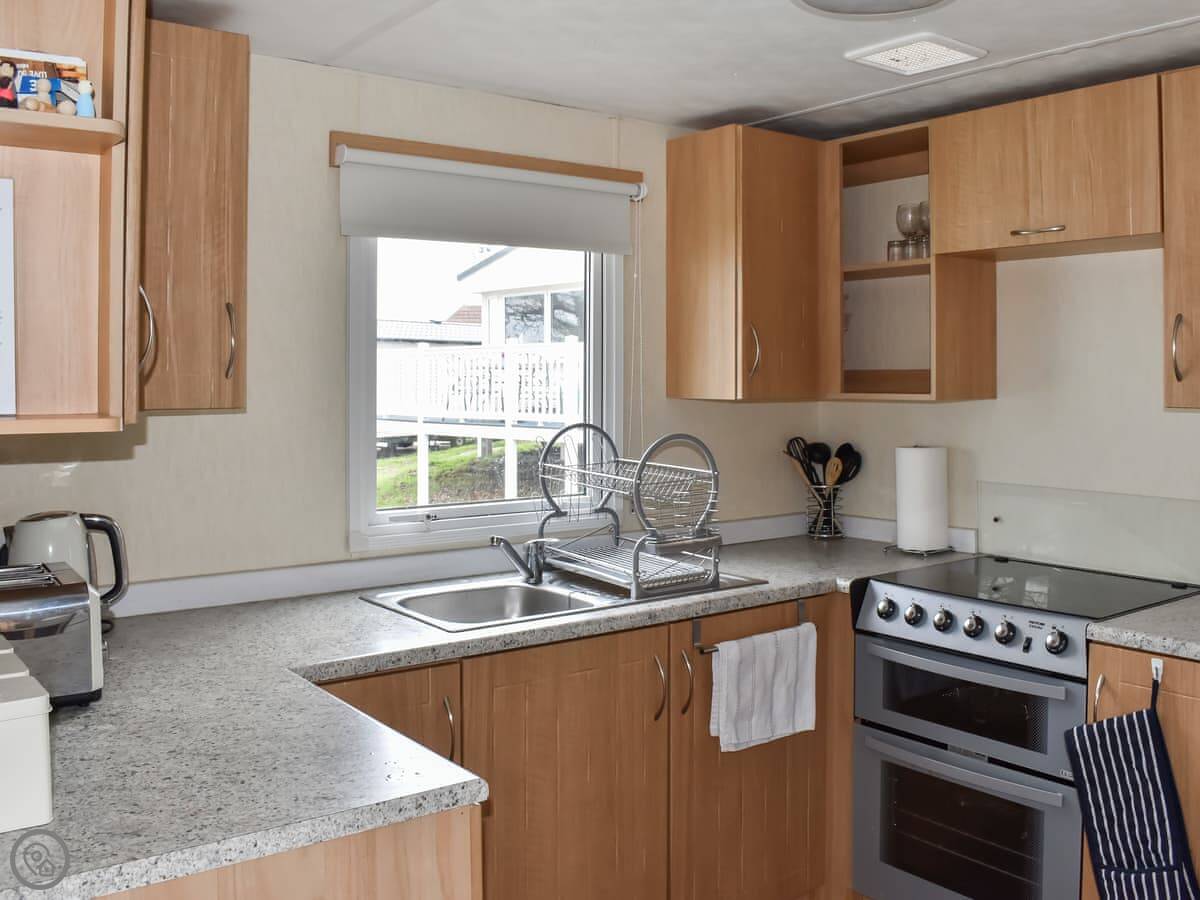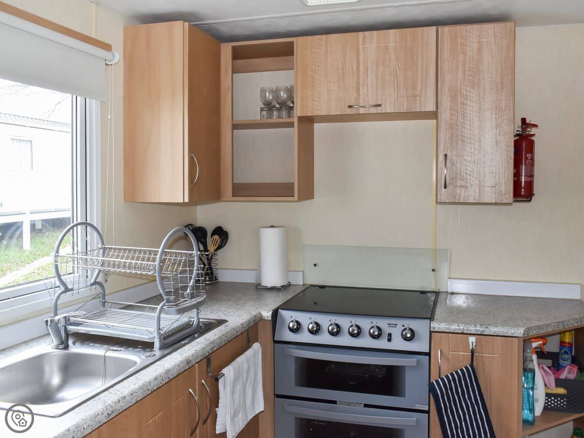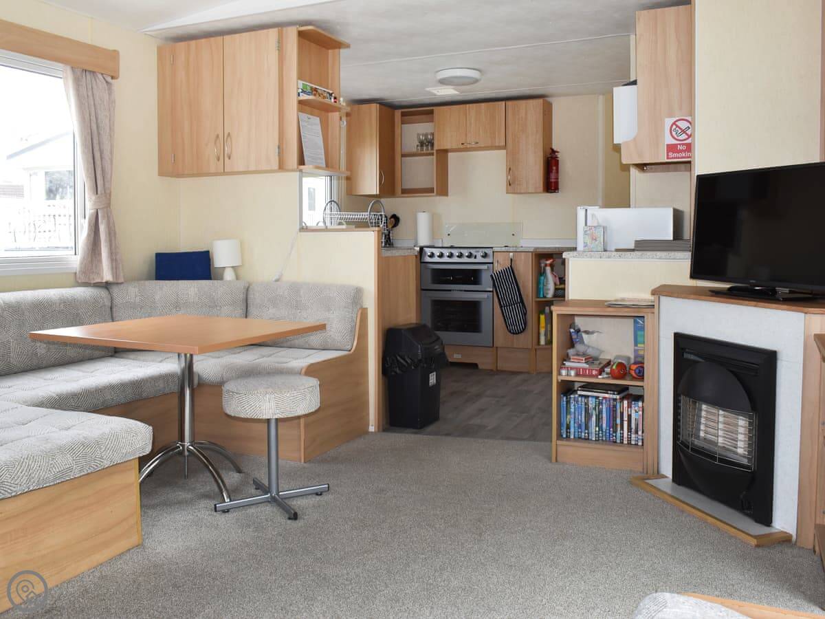Bayside is a caravan at Thorness Bay Holiday Park. It's a static caravan. It sleeps four, in two bedrooms. There's one bathroom and an open plan living area.