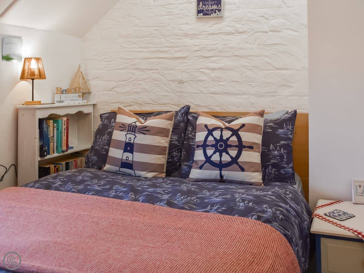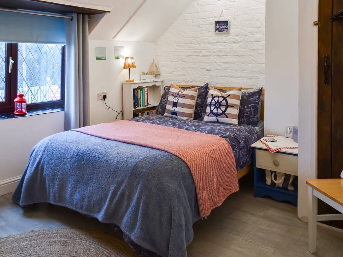 It's got a 4 Star rating, sleeps four. Two bedrooms, one bathroom. There's a woodburner for colder nights. The garden is out the back and down a shared passageway. It's enclosed, with a lawn.