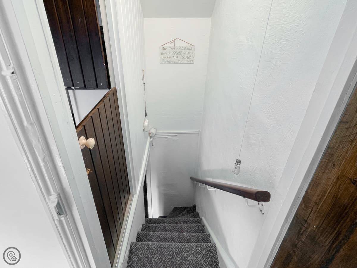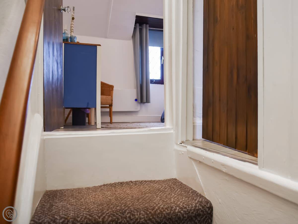 The stairs are steep, like a lot of old cottages. Both bedroom doors open right onto the top step of the staircase, so you need to be a bit careful.