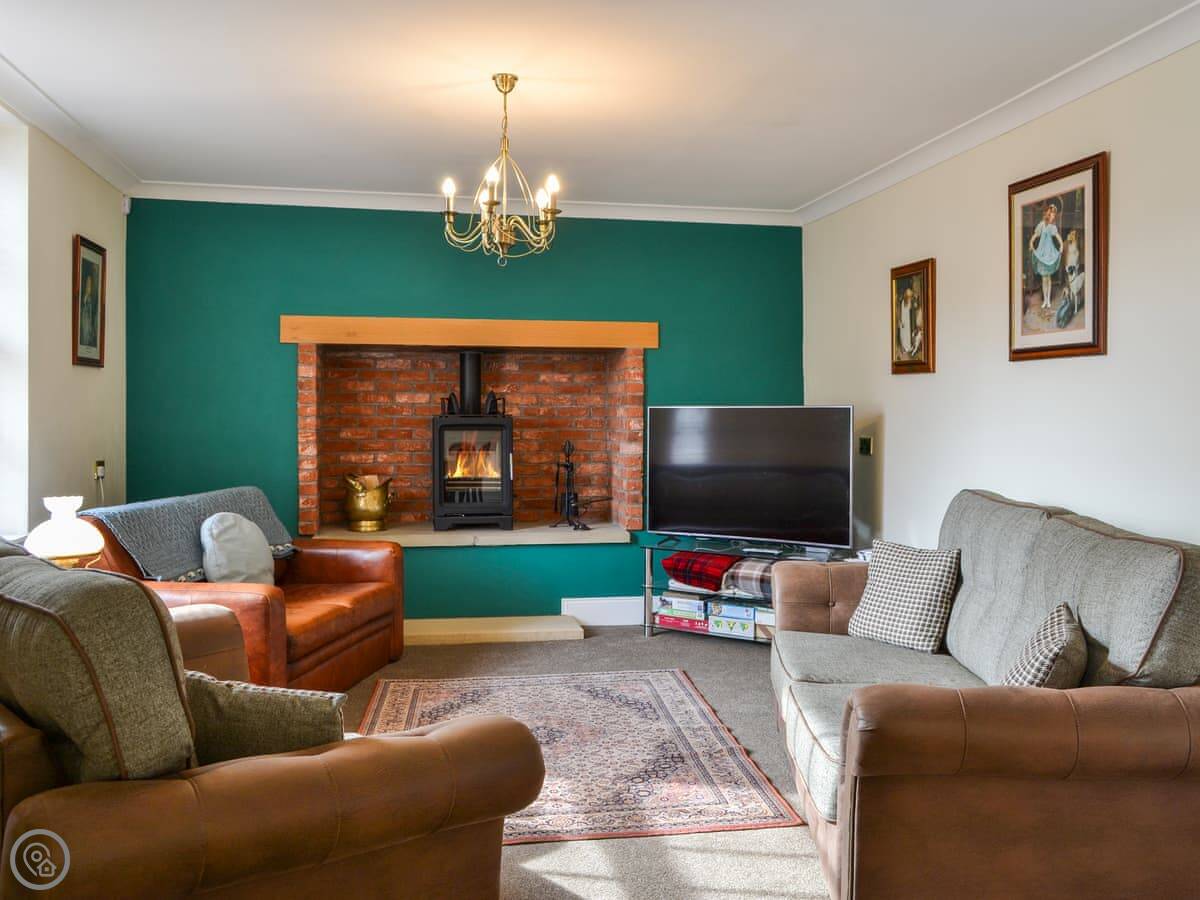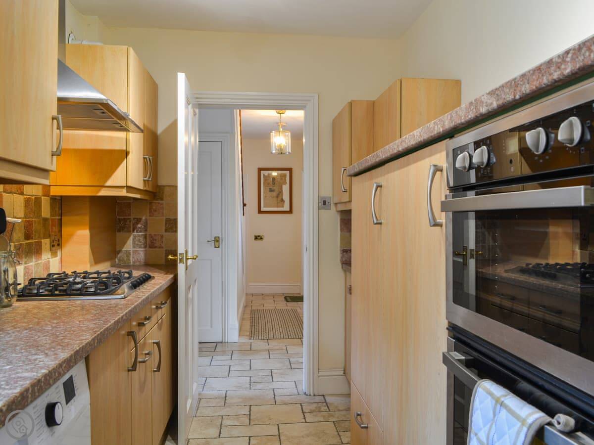 The kitchen is small but has everything you'd need, dishwasher, washing machine, that sort of thing. The living room is upstairs on the first floor, which gives you a view over the street. There's a wood burner. The garden is small and is next to Pickering Beck, which is the stream that runs through town. It's a nice spot to sit.