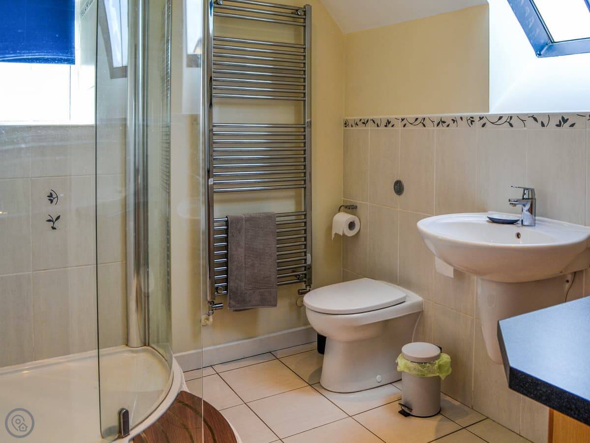It sleeps six in three bedrooms. There are three bathrooms, which is handy. One is downstairs, two are upstairs. The main bedroom has its own shower. It's got a 4 Star rating.