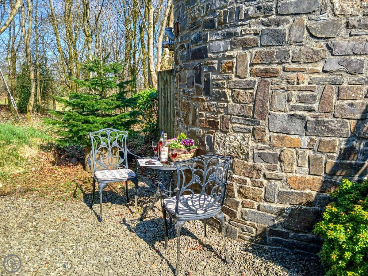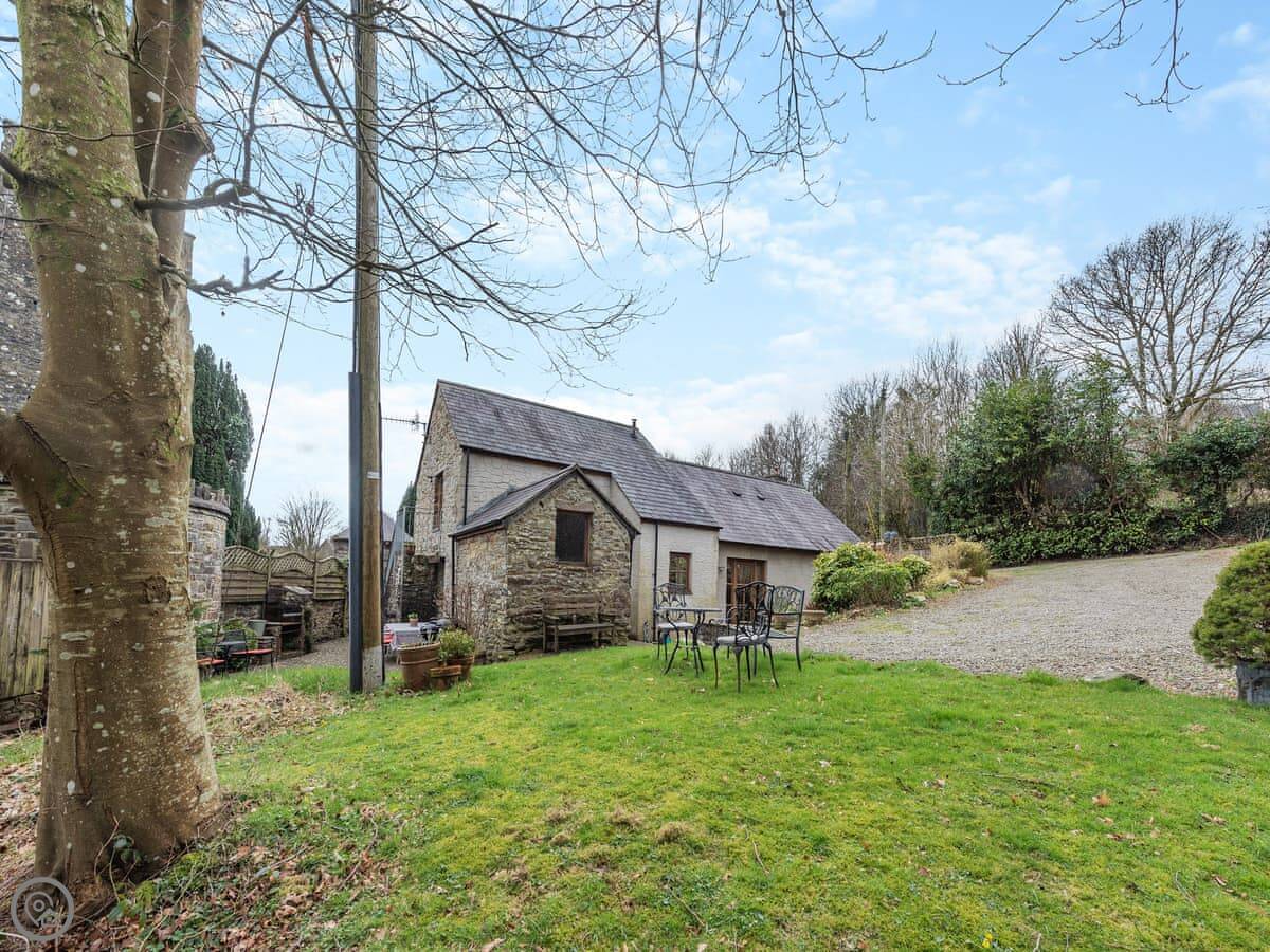 This is Y Cartws. It's in Llanwenog, next to the village church. It’s a detached stone cottage. The garden’s your own and it’s a decent size, partly lawn and partly woodland.
