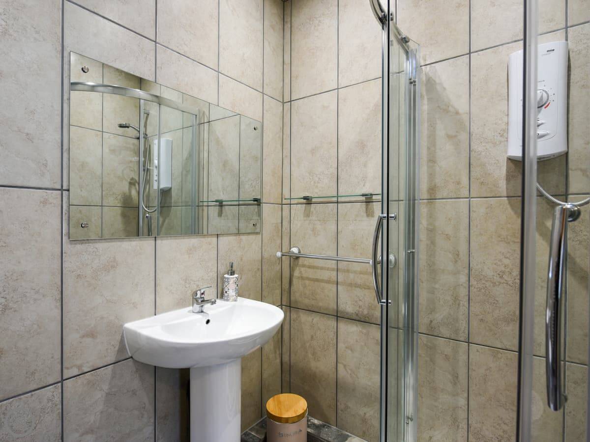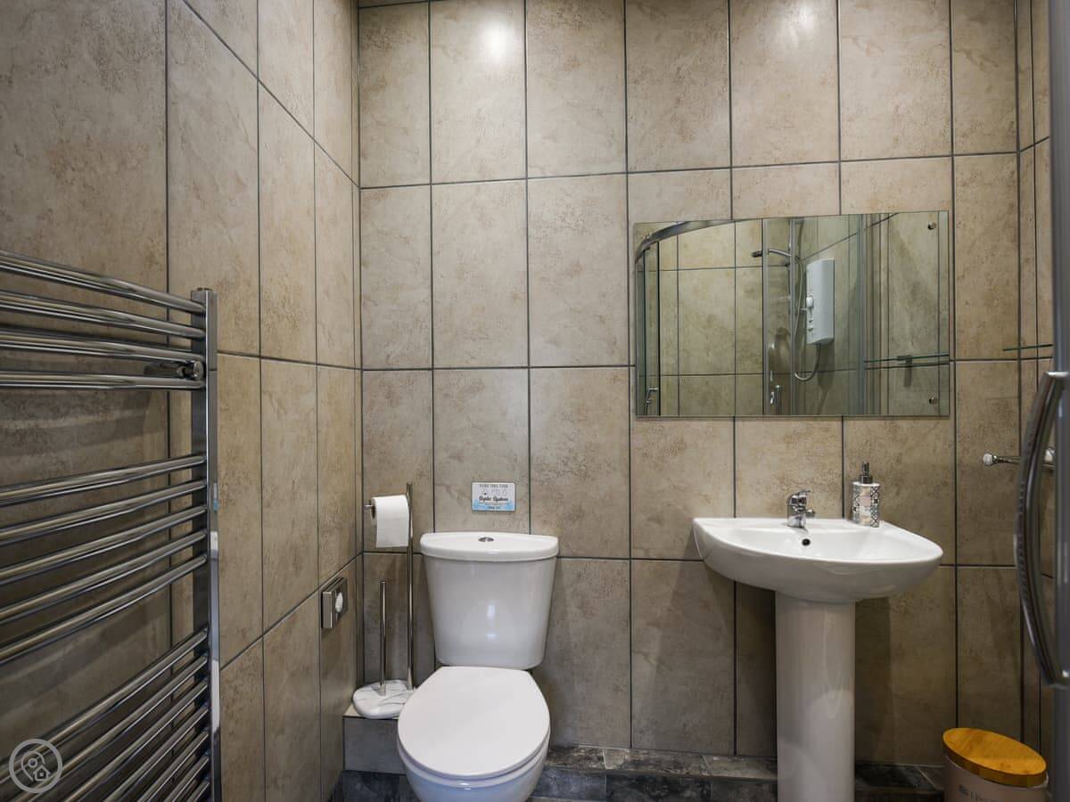 Inside, it's modern and clean. There's a washing machine, a dishwasher, and Wi-Fi. The TV is a smart one. A few decorations nod to it being an old milking parlour, but it's not over the top.