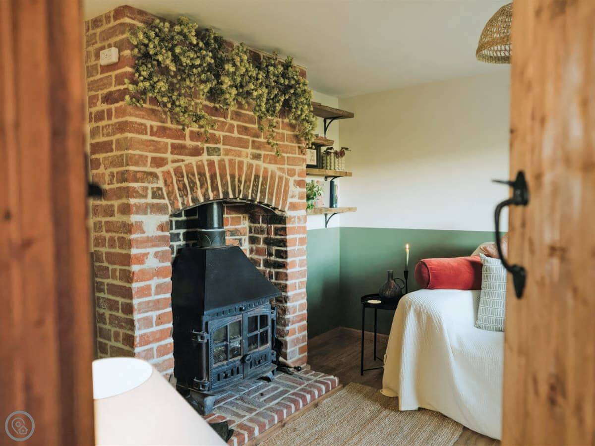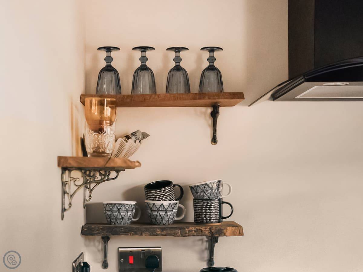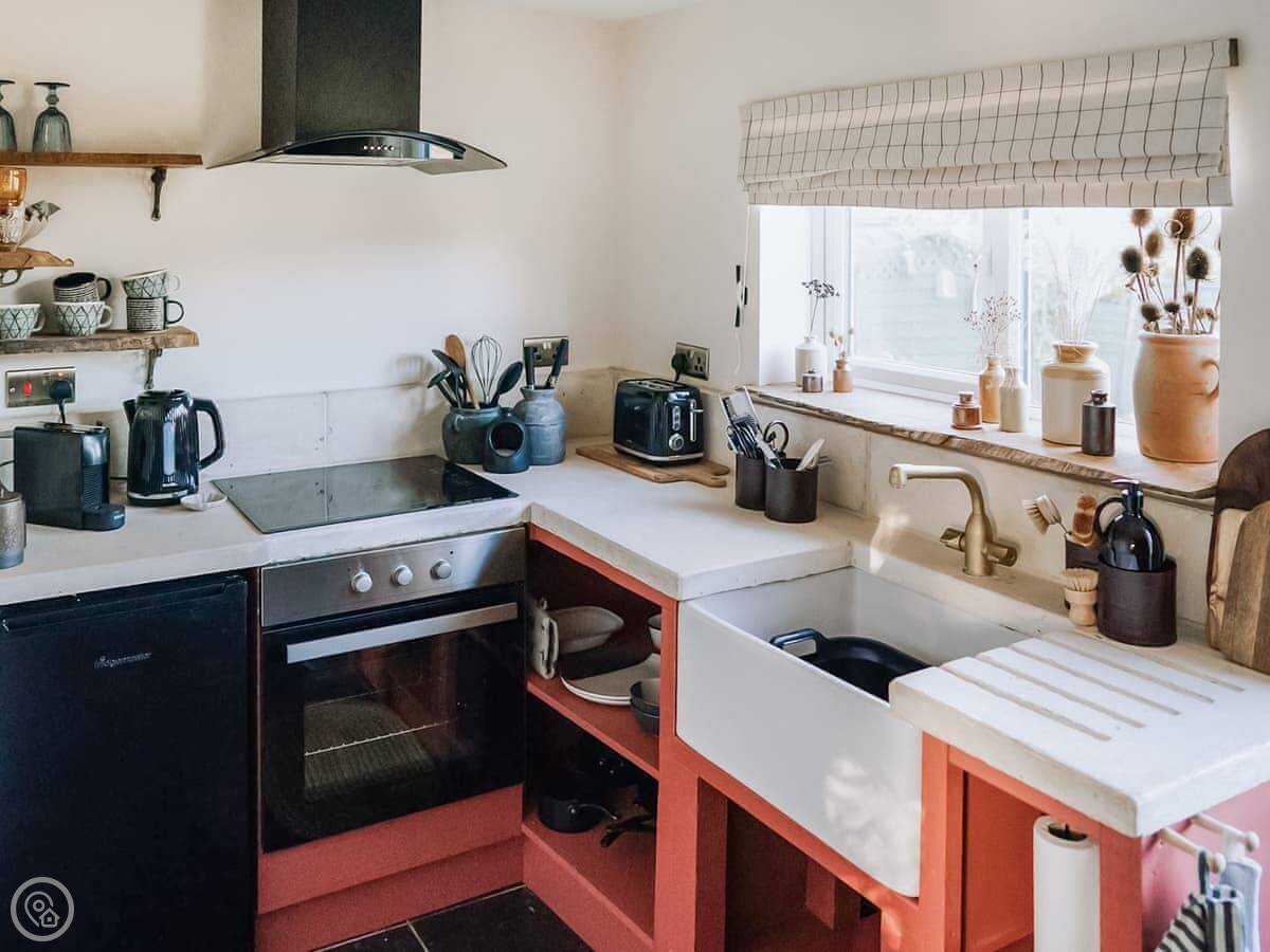 It's got a 4 Star rating, so it's comfortable and well-finished. There's a small, private garden at the back with a patio and a barbecue. Inside, there's a woodburning stove for cooler evenings. The kitchen has what you need. There's a washing machine, WiFi, and parking right outside.